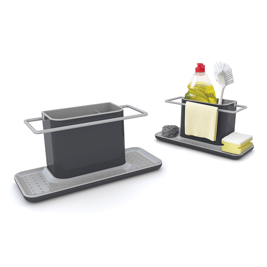 С этим практичным предметом процесс мытья посуды становится продуманным как никогда раньше. Вместительная основная ёмкость предназначена для хранения щёток и бутылок со средствами для мытья. На вешалке, расположенной вдоль её внешнего края, удобно сушить небольшие тряпки. Широкий поддон с отверстиями предоставляет место для просушивания губок, а скрывающийся под ним резервуар аккуратно собирает стекающую воду.