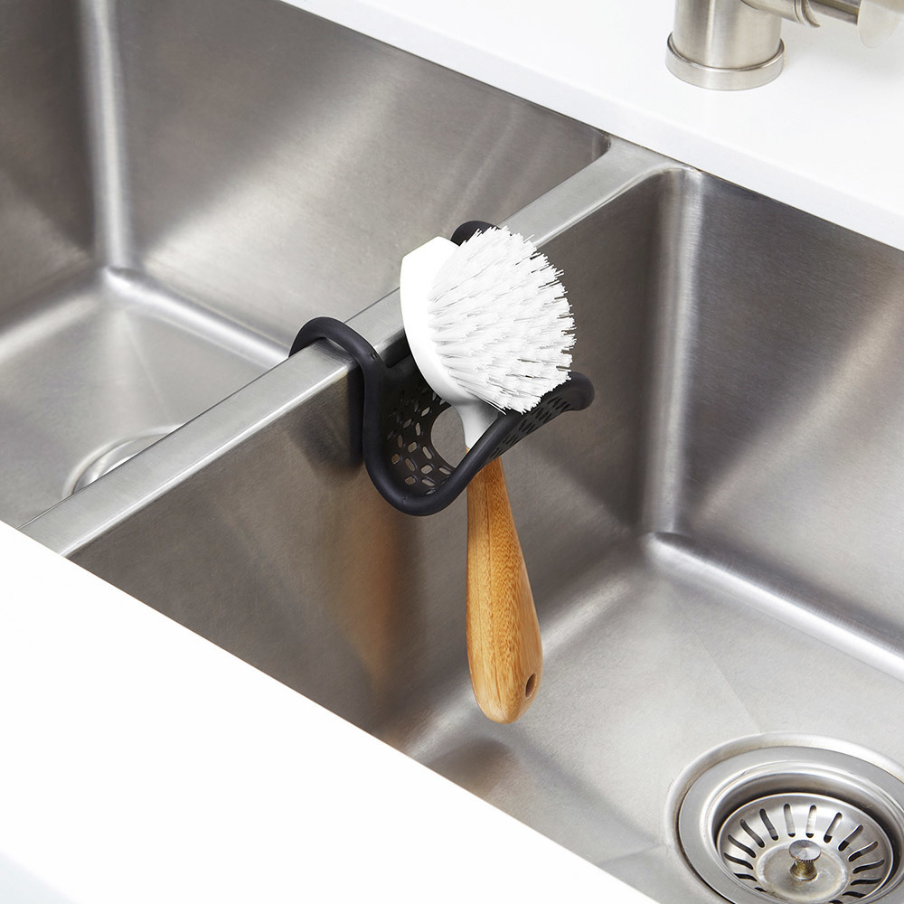 Уникальный органайзер для раковины из металлической проволоки с пластиковым покрытием. Ручка удобно гнётся и позволяет вешать органайзер на водопроводный кран или боковую сторону раковины.Подходит для хранения губок, щёток и прочих приспособлений для чистки и мытья. Перфорация даёт воздуху свободно циркулировать, поэтому губки и щётки будут сохнуть быстрее.