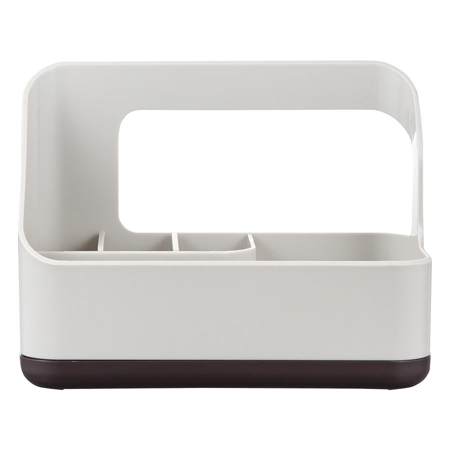 Органайзер Ronja позволит удобно разместить на раковине все необходимые аксессуары для очистки поверхностей и мытья посуды – губку, щетку, бутылку с жидким средством, целлюлозную салфетку и прочее. Специальная конструкция со съемным поддоном для оттока воды создает условия для быстрой сушки кухонной ветоши. Несмотря на небольшой вес, изделие из АБС-пластика и полипропилена отличается прочностью, устойчивостью к повреждениям и износу.