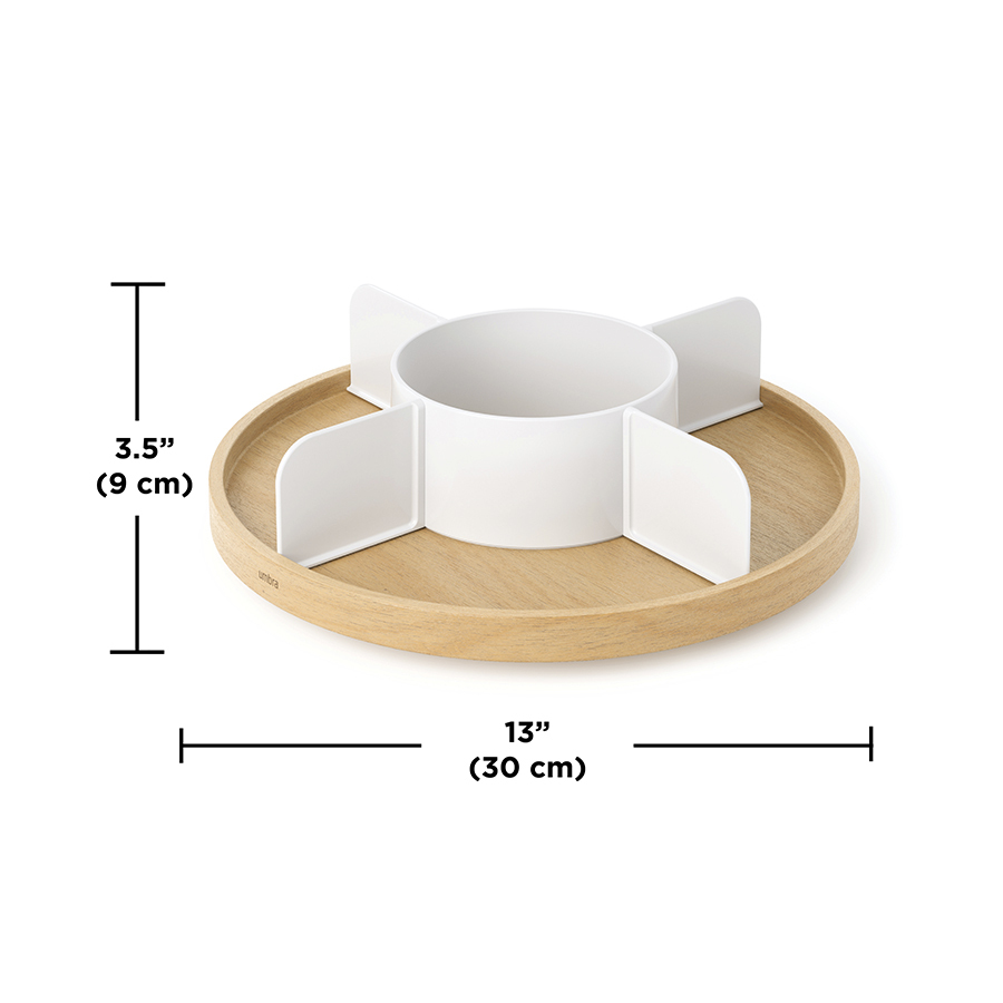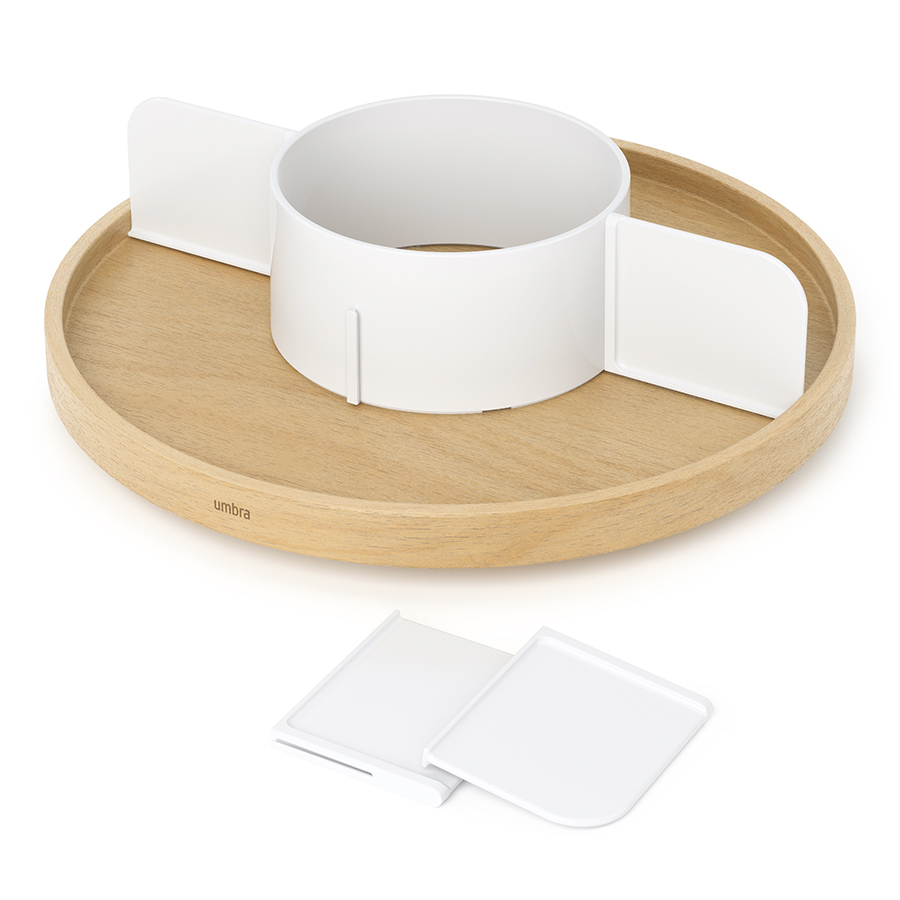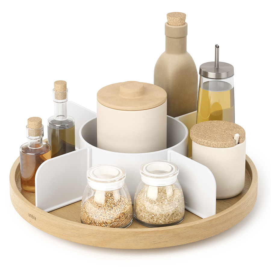 Органайзер Bellwood поможет организовать компактное хранение специй на полке или столешнице, а также обеспечить быстрый доступ к любой приправе за счет вращающейся конструкции. Органайзер имеет пять отделений, что делает его вместительным и позволяет раздельно хранить различные продукты: банки со специями, бутылки с маслом, уксусом, соусом и многое другое. Сочетание дерева и пластика подходит для различных интерьерных решений и гарантирует изделию устойчивость к износу и долгий срок службы.