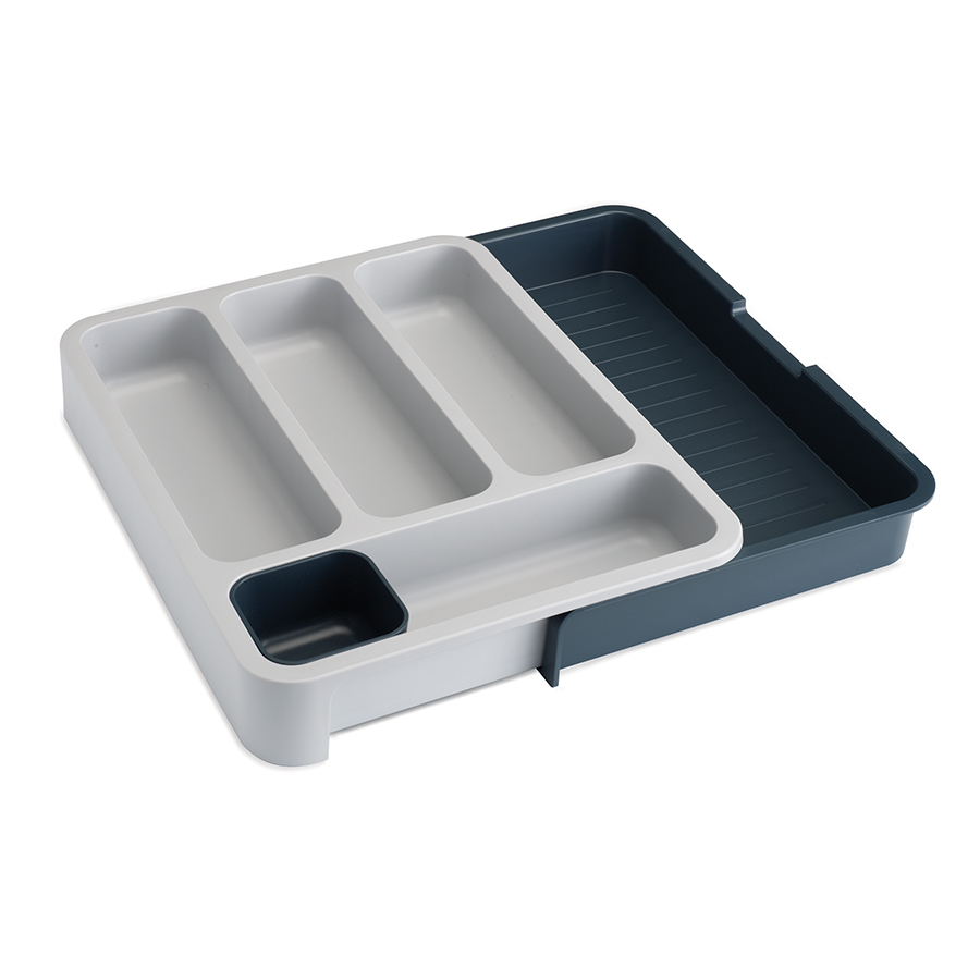Бестселлер по продажам в Великобритании! Замечательный органайзер-лоток для хранения столовых приборов поможет навести на кухне полный порядок и расставить все по местам. С помощью специальной съемной части вы сможете отрегулировать размер до желаемого и поместить в ящик. Имеет специальную съемную ячейку для хранения всякой мелочевки как в лотке, так и вне его.