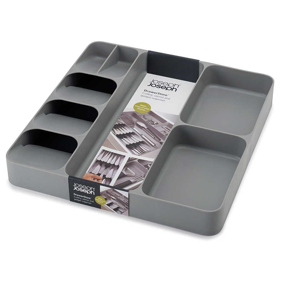 Новый органайзер позволяет компактно хранить столовые приборы и кухонные инструменты в одном ящике. Уникальный дизайн сэкономит место и упорядочит все предметы. Подходит для ящиков от 8 см.