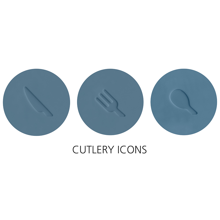 Иконки с изображением столовых приборов упрощают сортировки. На дне органайзера есть силиконовые ножки, которые обеспечивают плотное сцепление с любой поверхностью. Отлично дополняет органайзер для кухонных ножей DrawerStore.