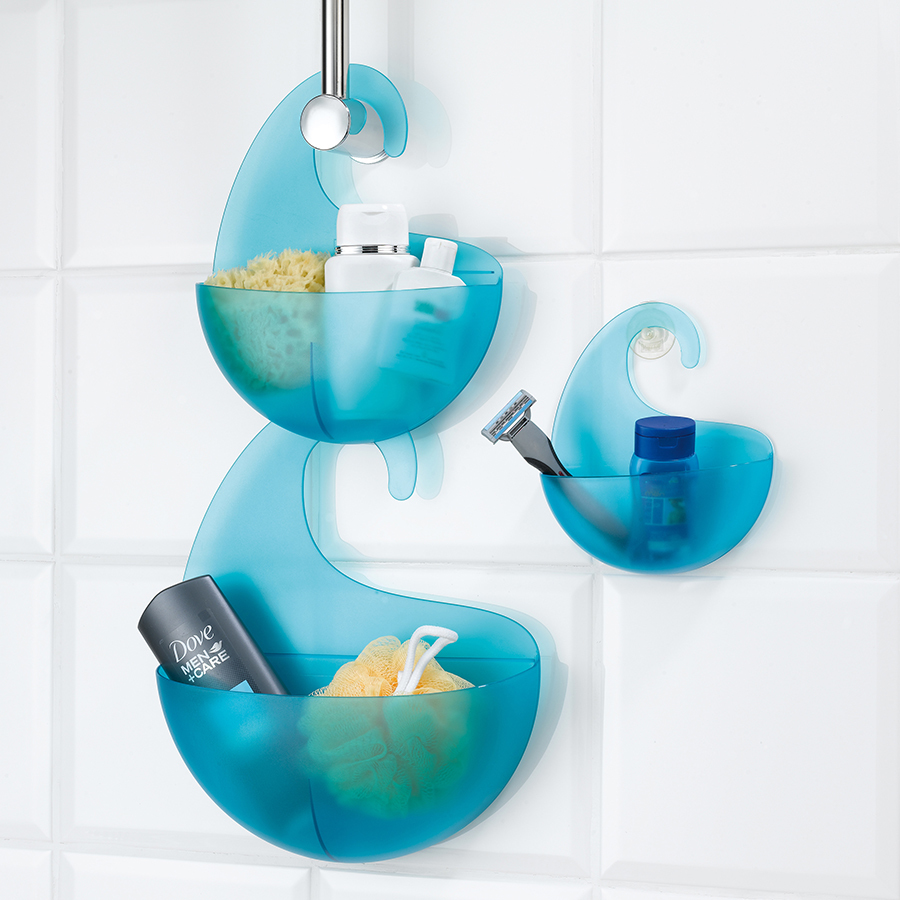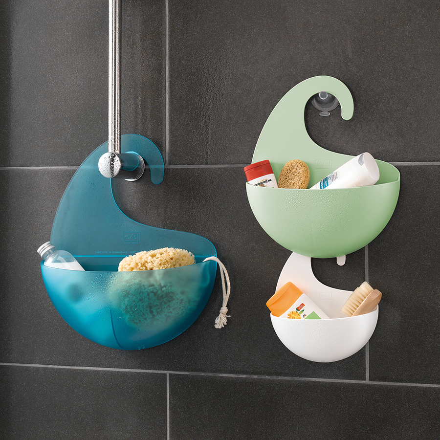 Органайзер Surf с крючком в виде волны можно повесить на стойку душа или кран. Две прорези на дне органайзера выполняют две функции: не дают воде застаиваться и позволяют цеплять органайзеры друг за друга.