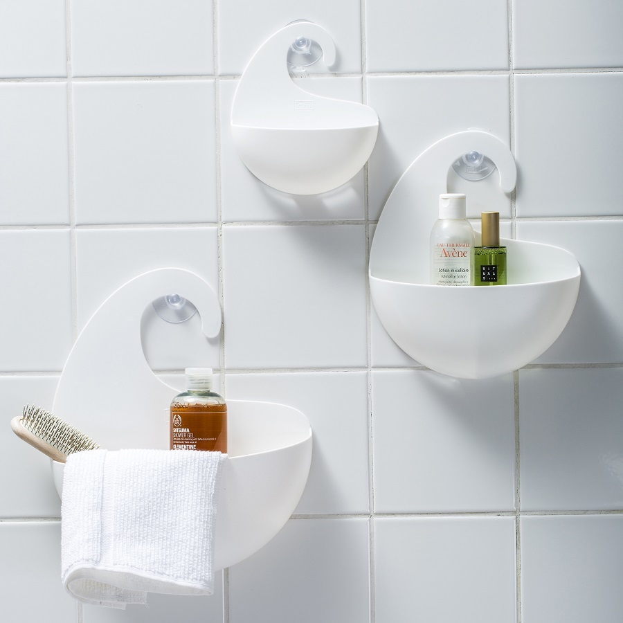 Органайзер Surf с крючком в виде волны можно повесить на стойку душа или кран. Прорези на дне выполняют несколько функций: не дают воде застаиваться и позволяют цеплять органайзеры друг за друга.