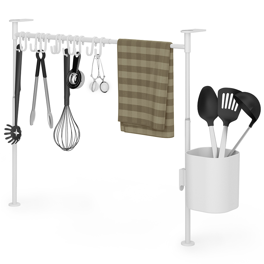 Многофункциональный органайзер оснащен двенадцатью крючками и подвесным контейнером. Конструкция легко раздвигается без инструментов. Органайзер раздвигается от 38 до 50 см в высоту и от 39 до 61 см в ширину. Мягкие накладки защищают мебель от повреждений.