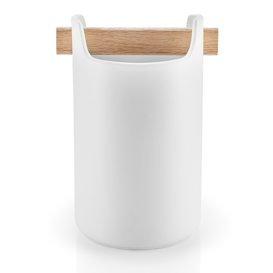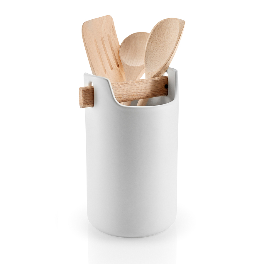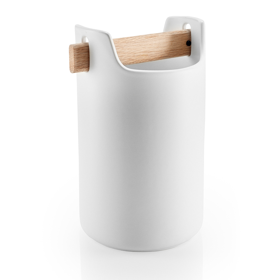 Органайзер – один из самых необходимых предметов на кухне. Он не даёт беспорядку распространяться и экономит время, которое часто тратиться на поиски нужной вещи. Органайзер Eva Solo из белоснежной керамики с ручкой их натурального дуба, которая также выполняет функцию разделителя, создающего внутри две секции для хранения. Внешний вид органайзера напоминает ящик с инструментами, только более рафинированную его версию. Он будет также уместно смотреться на рабочем столе или в ванной: сложите туда кисти для рисования, щётки и губки, карандаши и ножницы или косметические кисти и тюбики с кремом.