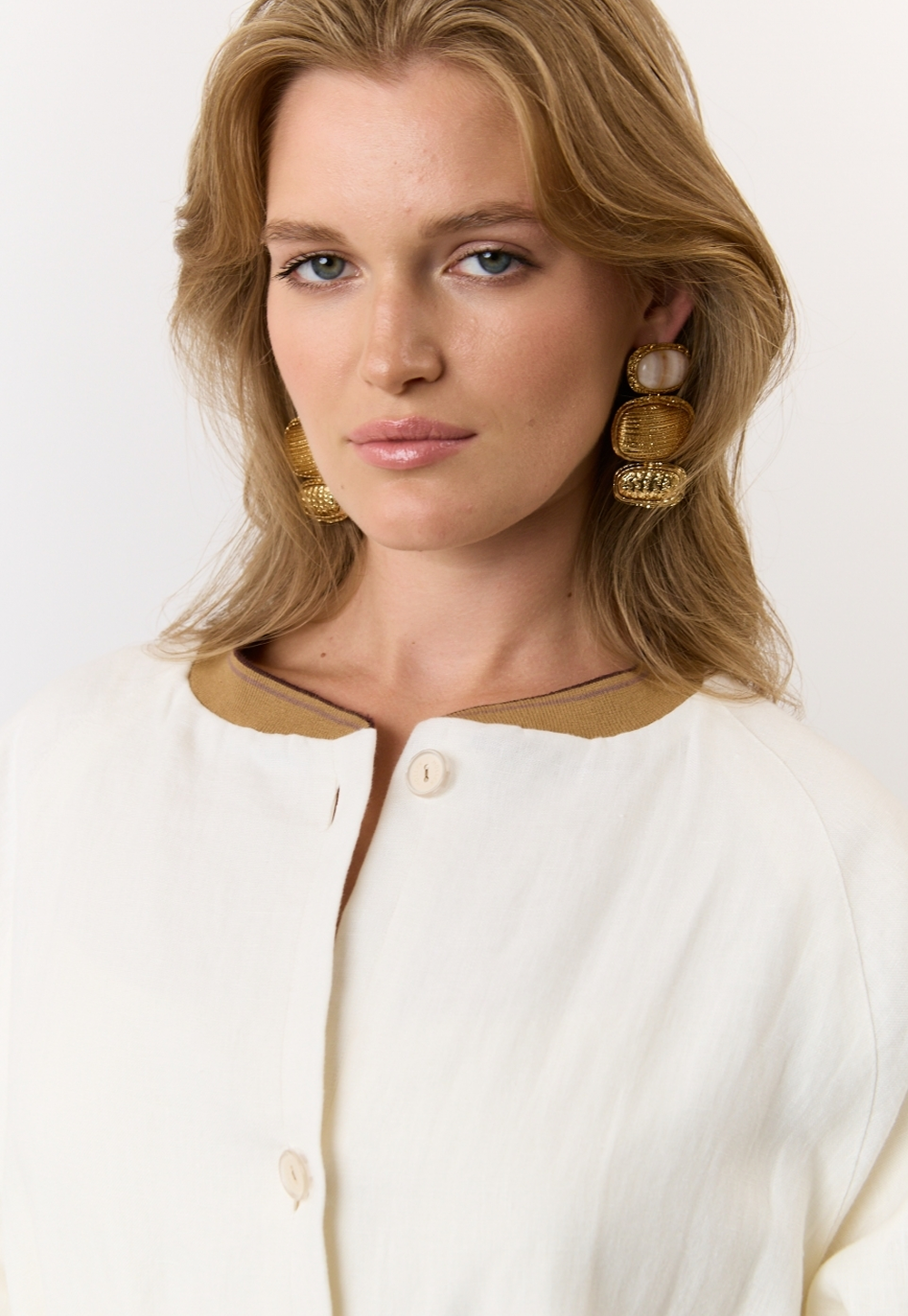 Натуральный лен делает пальто особенно комфортным в теплую погоду: ткань хорошо пропускает воздух, помогает поддерживать комфортную температуру тела и быстро отводит влагу. Материал приятен на ощупь и подходит тем, кто выбирает одежду из природных волокон. Легкость ткани позволяет пальто выглядеть структурно и элегантно, не утяжеляя образ.