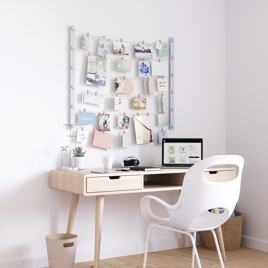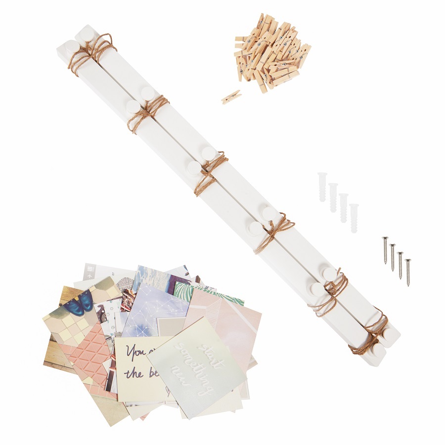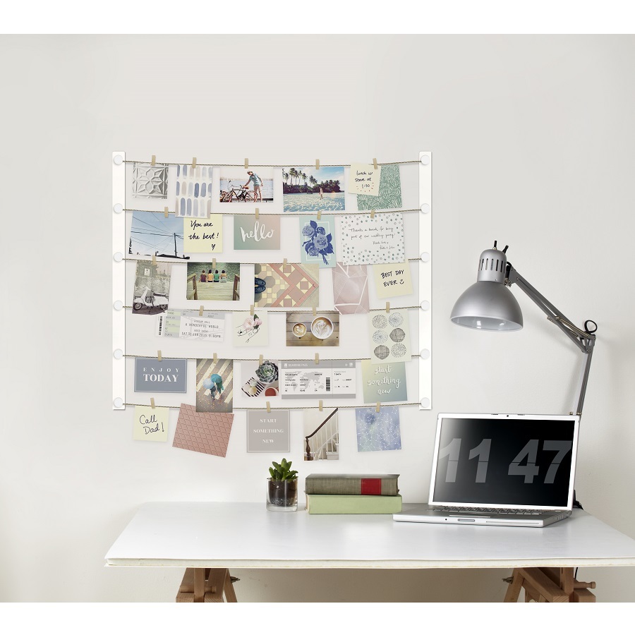 Подвесное панно для фотографий Hangup торговой марки Umbra позволит каждый день наслаждаться яркими воспоминаниями. Идея создания изделия принадлежит дизайнеру Полю Лебаху. Декор для стены станет гармоничным дополнением интерьера гостиной, спальни или кабинета. Панно идеально подойдет для размещения фотографий, открыток, памяток и различных сувениров. Конструкция состоит из деревянной рамы и шести шпагатных нитей. Для крепления снимков и заметок в набор входит 30 прищепок.