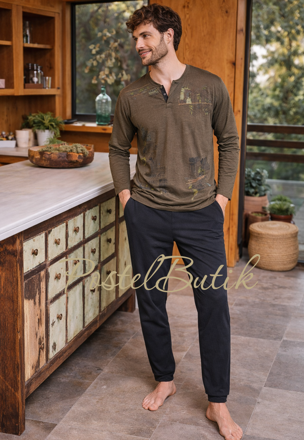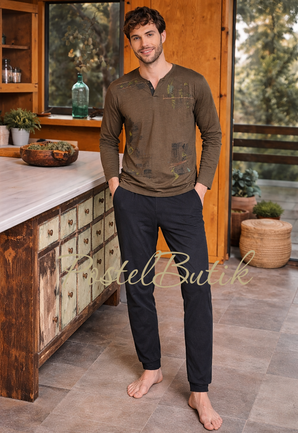 Идеальный баланс комфорта и эстетики: мужская пижама-костюм создана для тех, кто ценит качество материалов, свободу движений и продуманный дизайн. Лаконичная, современная и приятная к телу — она одинаково уместна для отдыха дома, неспешных выходных и уютных вечеров.