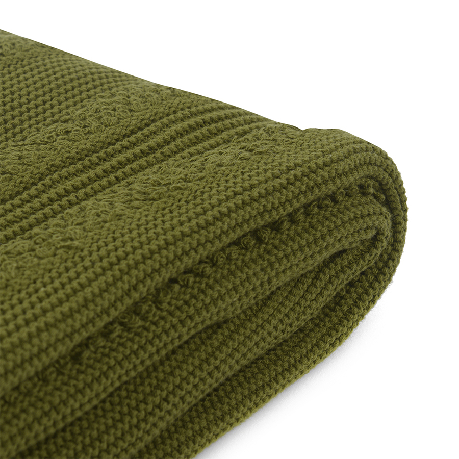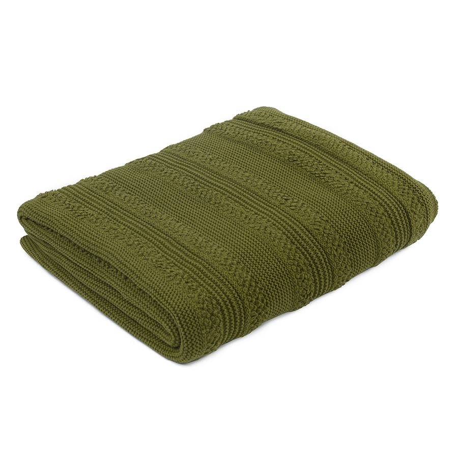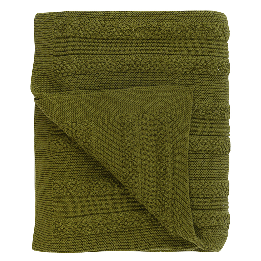 Плед 130х170см Tkano Essential с буклированной вязкой оливковый
