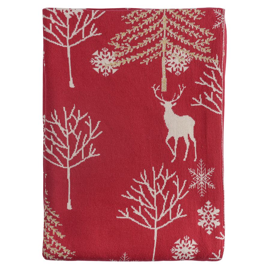 Плед из хлопка с новогодним рисунком Winter fairytale из коллекции New Year Essential гармонично дополнит праздничный интерьер. Изделие выполнено из натурального хлопка – гипоаллергенного и приятного на ощупь материала. Рисунок со снежинками и оленями среди деревьев в традиционной для праздника красно-белой гамме органично впишется в новогодний декор. Модель отлично подойдет для детской или гостиной. Плед упакован в брендированную крафтовую коробку.