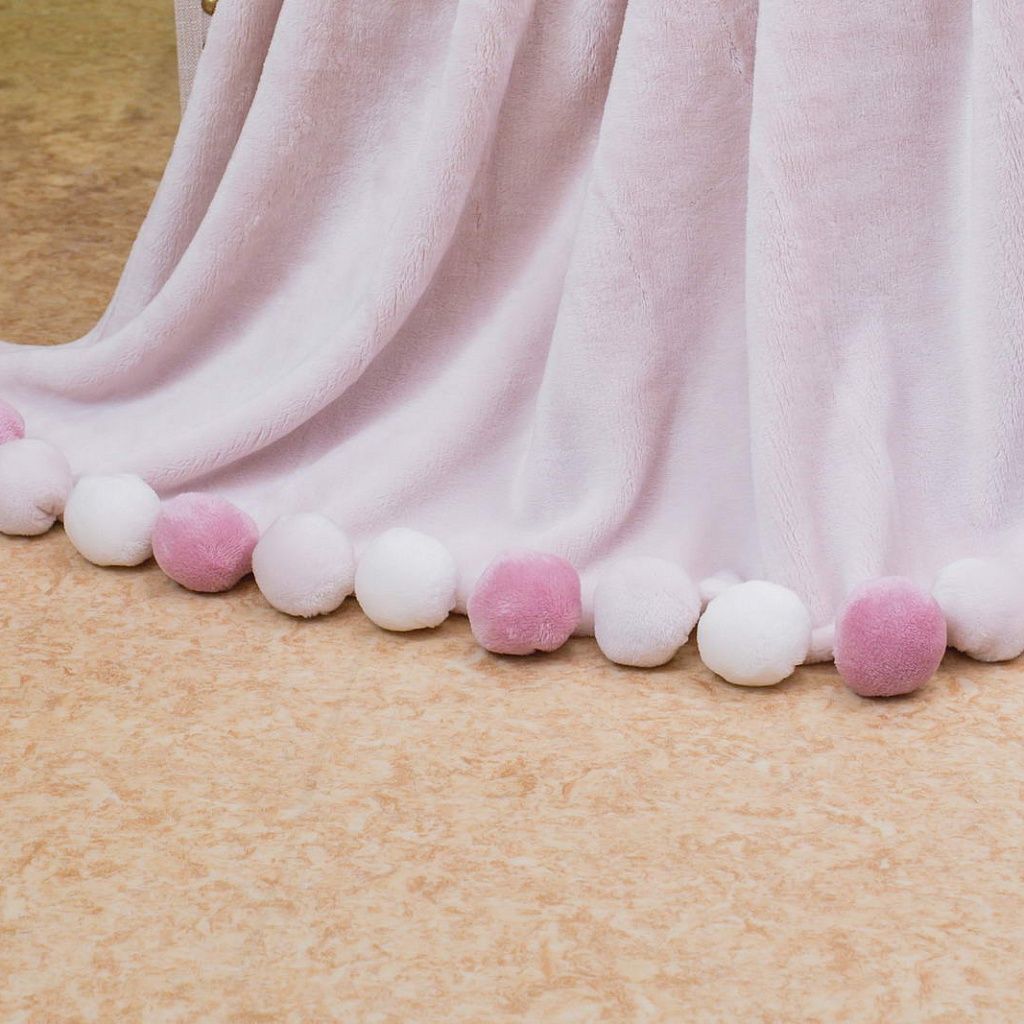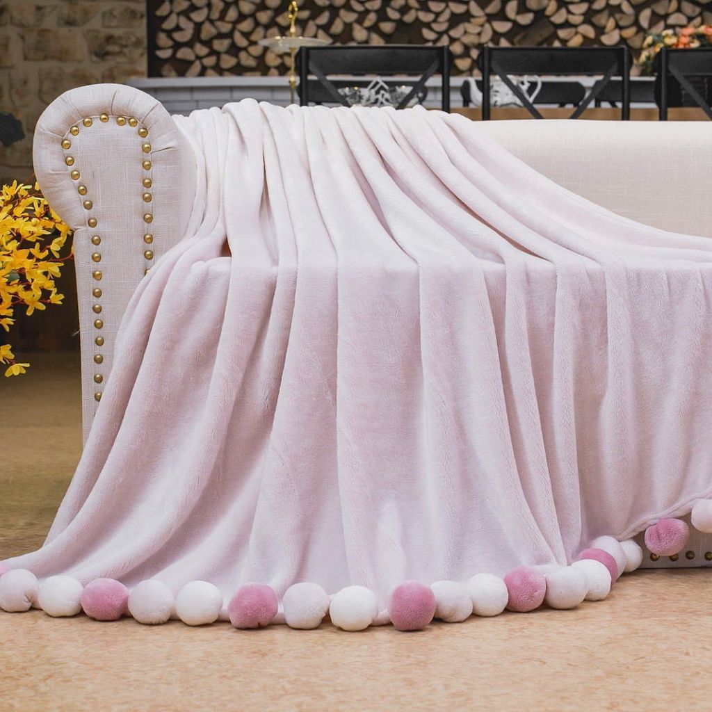 Пледы Sofi De MarkO Бубоныиз велсофта состоят из синтетических тончайших нитей, определяющих его свойства: прочность, легкость, нежный ворс. Мягкие, пушистые пледы не раздражают кожу, гипоаллергенны, сохраняют тепло, легко поддаются машинной стирке, быстро сохнут и не дают усадку. С двух, более коротких сторон, плед декорирован бубонами.