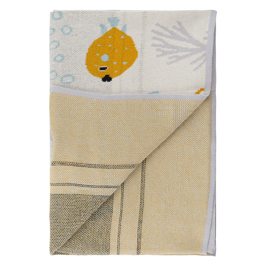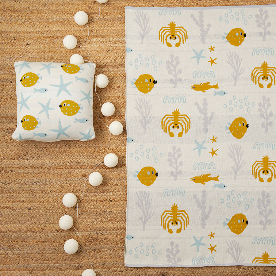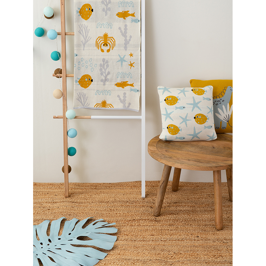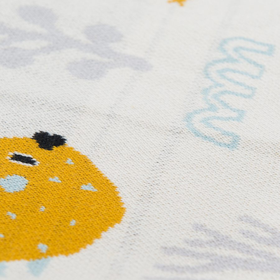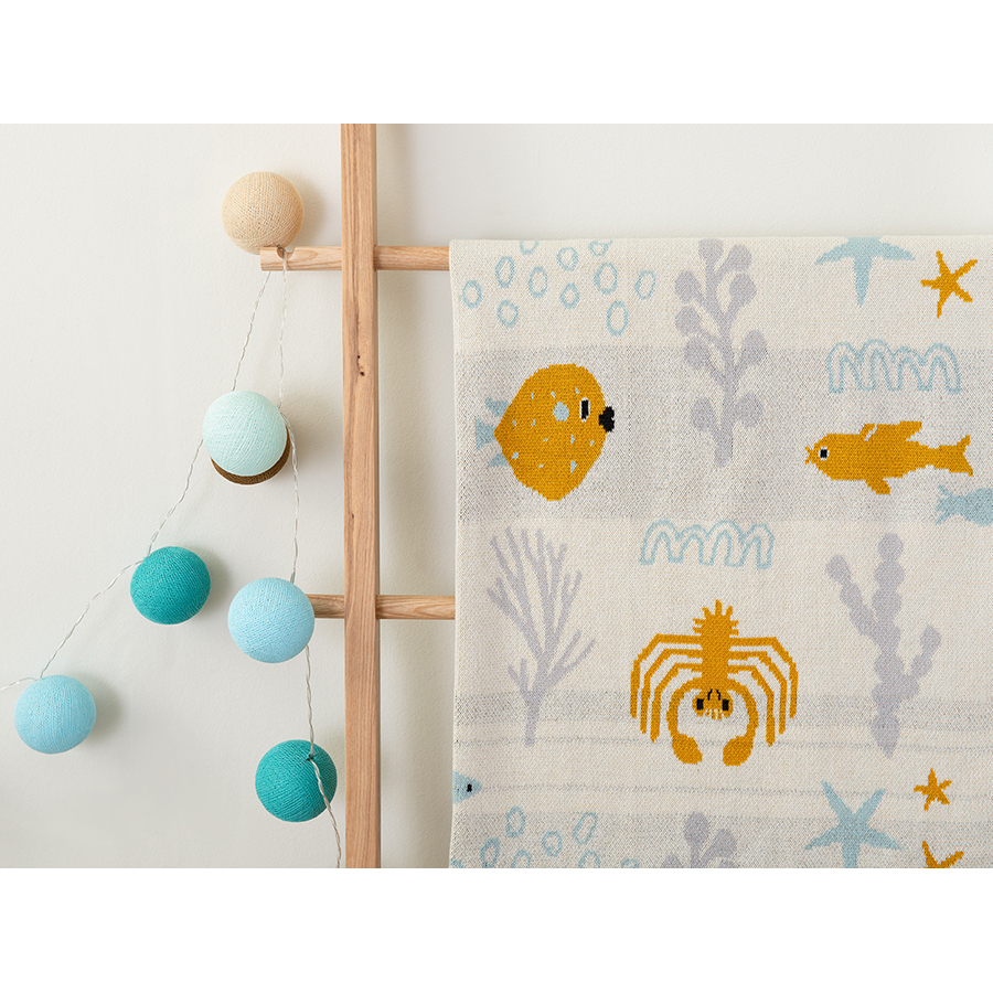 Плед из хлопка с принтом Oceania world из коллекции Tiny world станет украшением детской комнаты или коляски, его можно взять с собой на пикник или на пляж, в поездку на машине. Стилизованные морские обитатели могут стать темой для полезных разговоров даже с маленькими детьми. Материал: натуральный хлопок – гипоаллергенный и приятный на ощупь материал, что особенно важно при контакте с детской кожей.