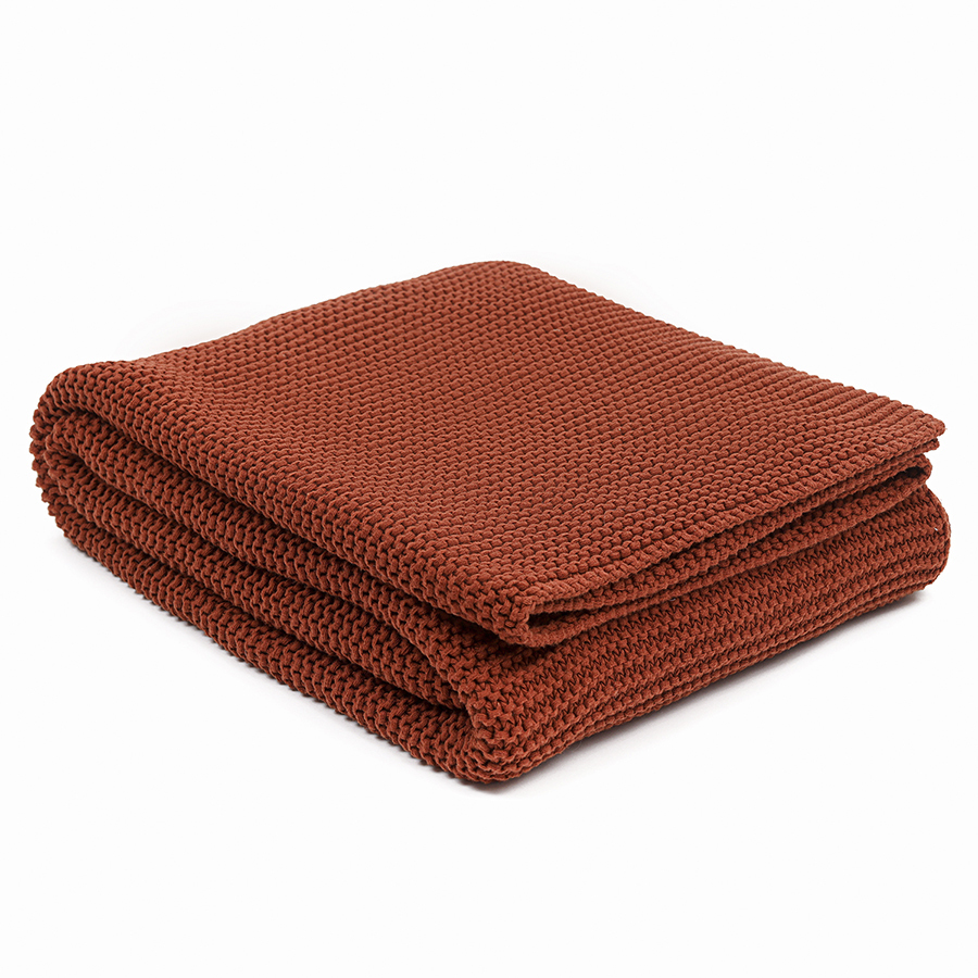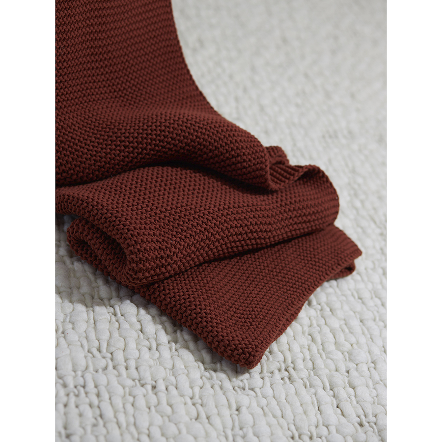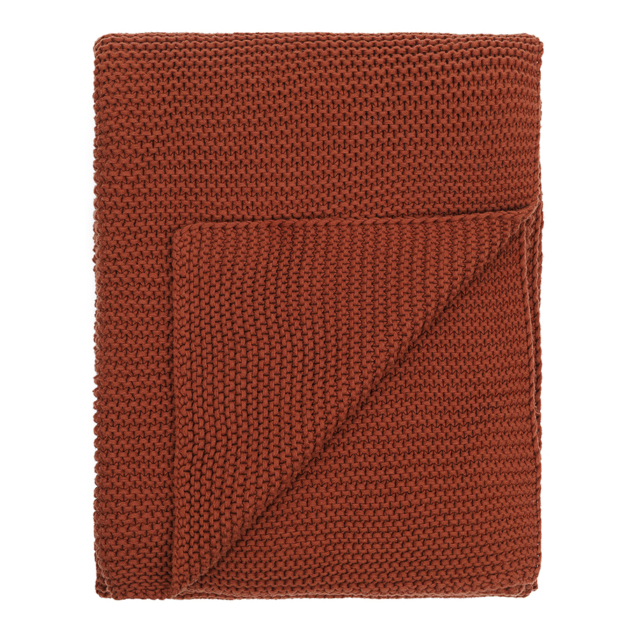 Плед терракотового цвета из хлопка жемчужной вязки из коллекции Essential – стильный аксессуар для спальни, гостиной или детской комнаты. Он выполнен из гипоаллергенного и приятного на ощупь натурального хлопка. Дышащий фактурный материал легкий и теплый. Изделие упаковано в брендированную крафтовую коробку.