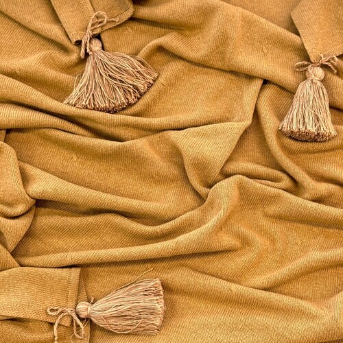 - Уникальный дизайн с историей: По краям пледа — съемные кисти ручной работы, которые являются его фирменным акцентом. В комплекте вы получаете второй набор кистей другого цвета в подарок, позволяя в два клика менять настроение аксессуара, подстраивая его под свой образ или интерьер.