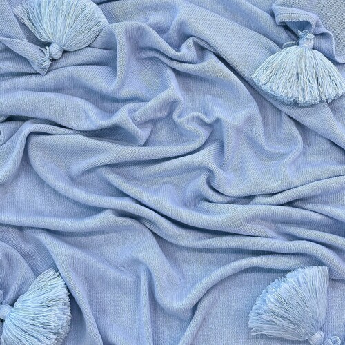- Вариативность образа: Кисти можно снять полностью, чтобы получить лаконичный и минималистичный вариант пледа или палантина для строгих луков. Плед представлен в богатой палитре от нежных пастельных до глубоких насыщенных оттенков — воздушный голубой привнесет в ваш мир легкость и безмятежность.