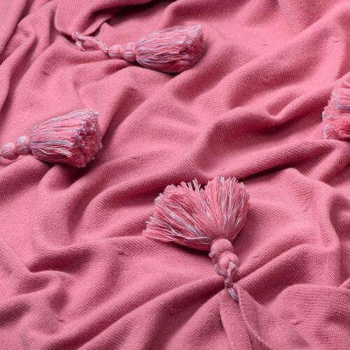 - Вариативность образа: Кисти можно снять полностью, чтобы получить лаконичный и минималистичный вариант пледа или палантина для строгих луков. Плед представлен в богатой палитре от нежных пастельных до глубоких насыщенных оттенков — изысканный розовый подчеркнет вашу женственность и чувство стиля.
