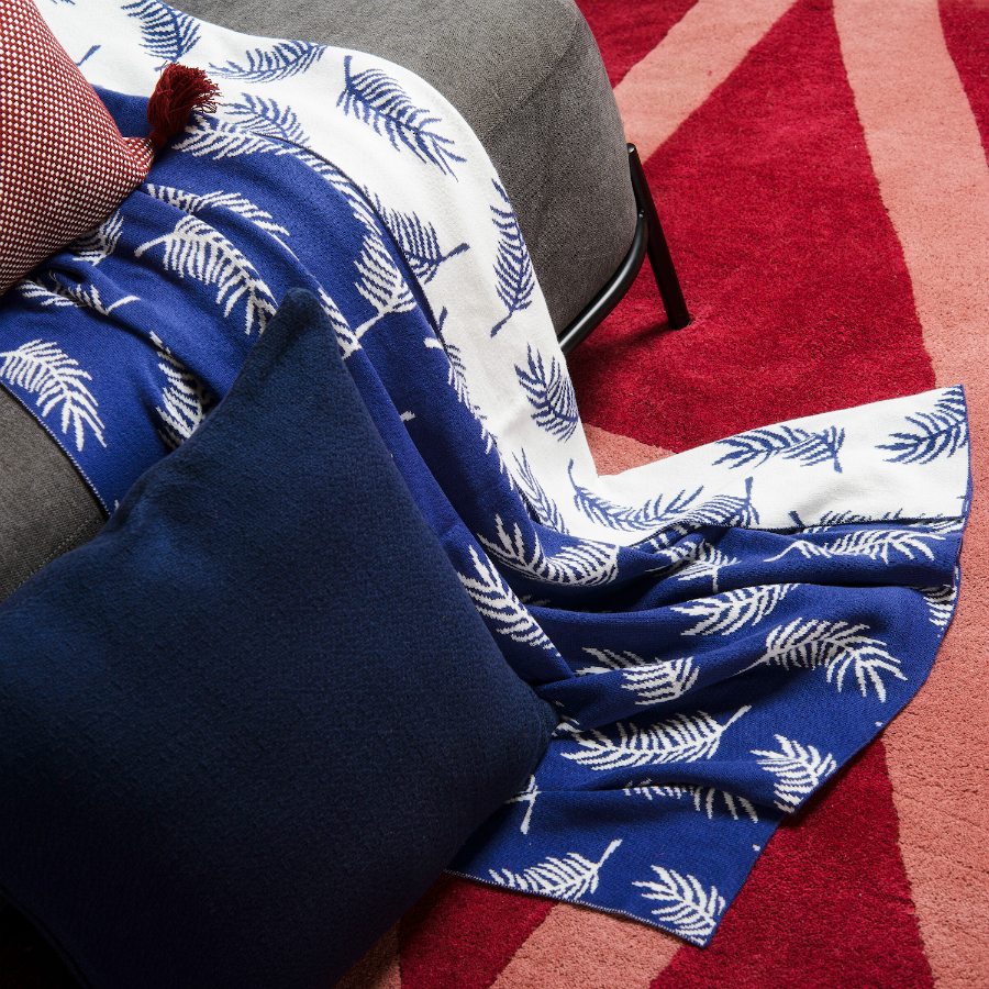 Вязаный плед синего оттенка идеально подчеркнет интерьер: за это отвечает крупный авторский узор Fleshy Leaves. Изделие выполнено из прочного мягкого хлопка. Благодаря плотному переплетению гладких нитей такой текстиль не деформируется, не линяет, и на нем не образуются катышки. Изделие упаковано в брендированную крафтовую коробку.