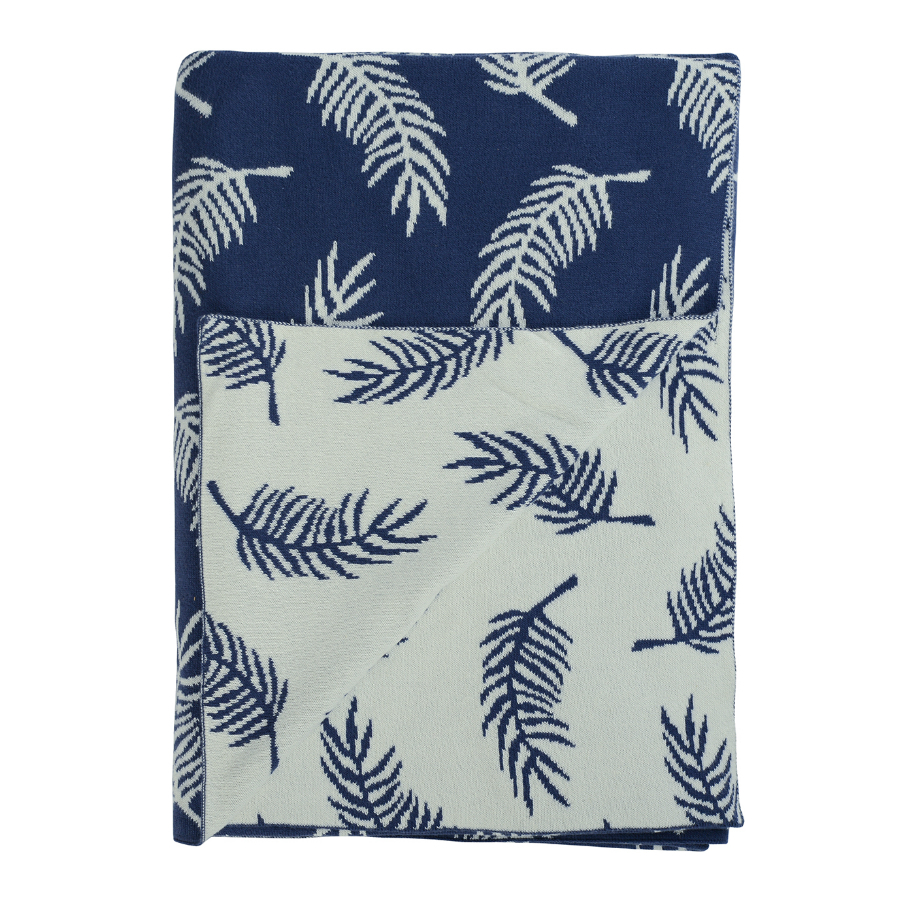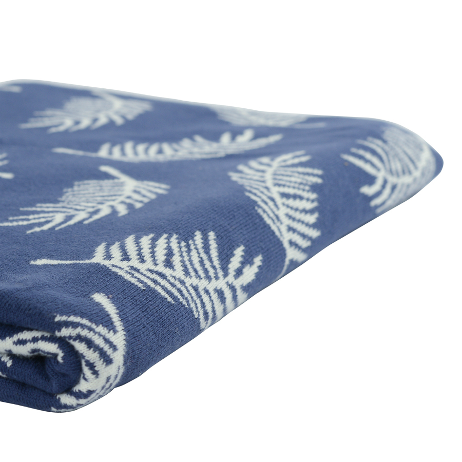 Плед вязаный 130х180 Tkano Wild Fleshy Leaves синий