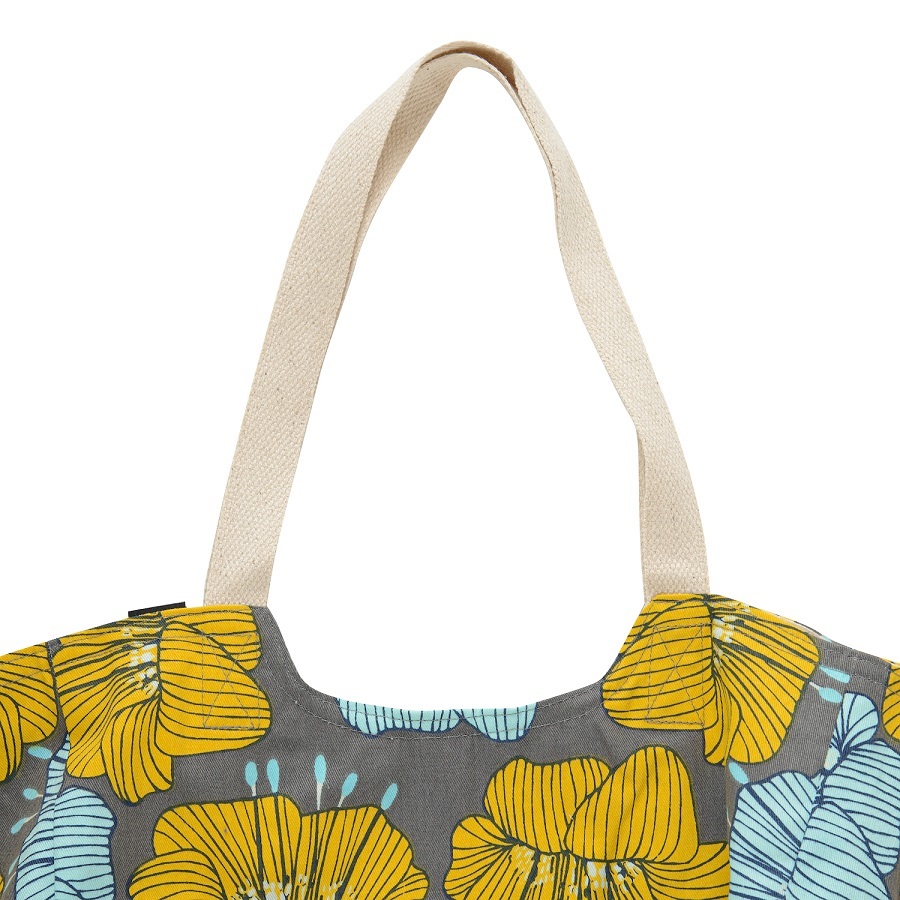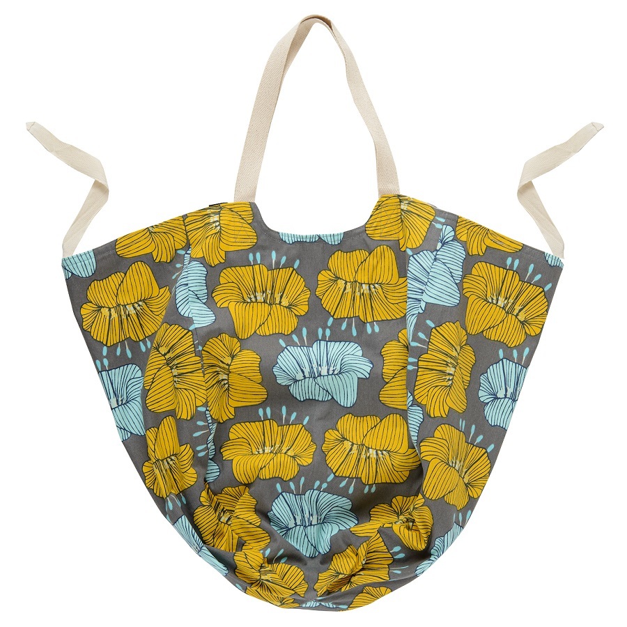 Пляжная сумка из хлопка серого цвета с принтом Цветы из коллекции Prairie – , ,это стильное и практичное решение для повседневных покупок. В сложенном виде занимает мало места. Модель с широкими ручками из прочной киперной ленты выдерживает большой вес. Две завязки по краям помогут уменьшить объем при небольшой загрузке. Экологичная альтернатива одноразовым пластиковым пакетам.