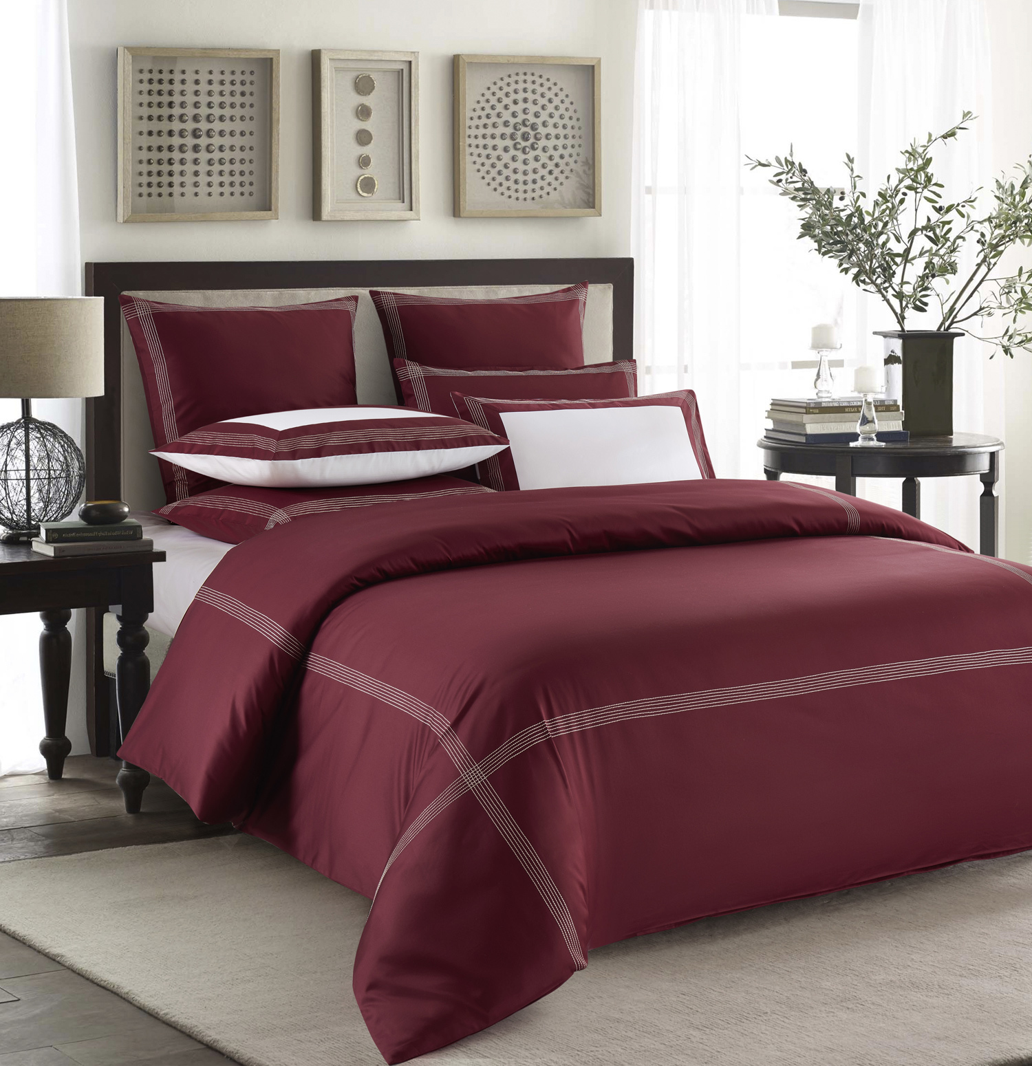 Пододеяльник 200х220 Sharmes Merrow stitch бордовый