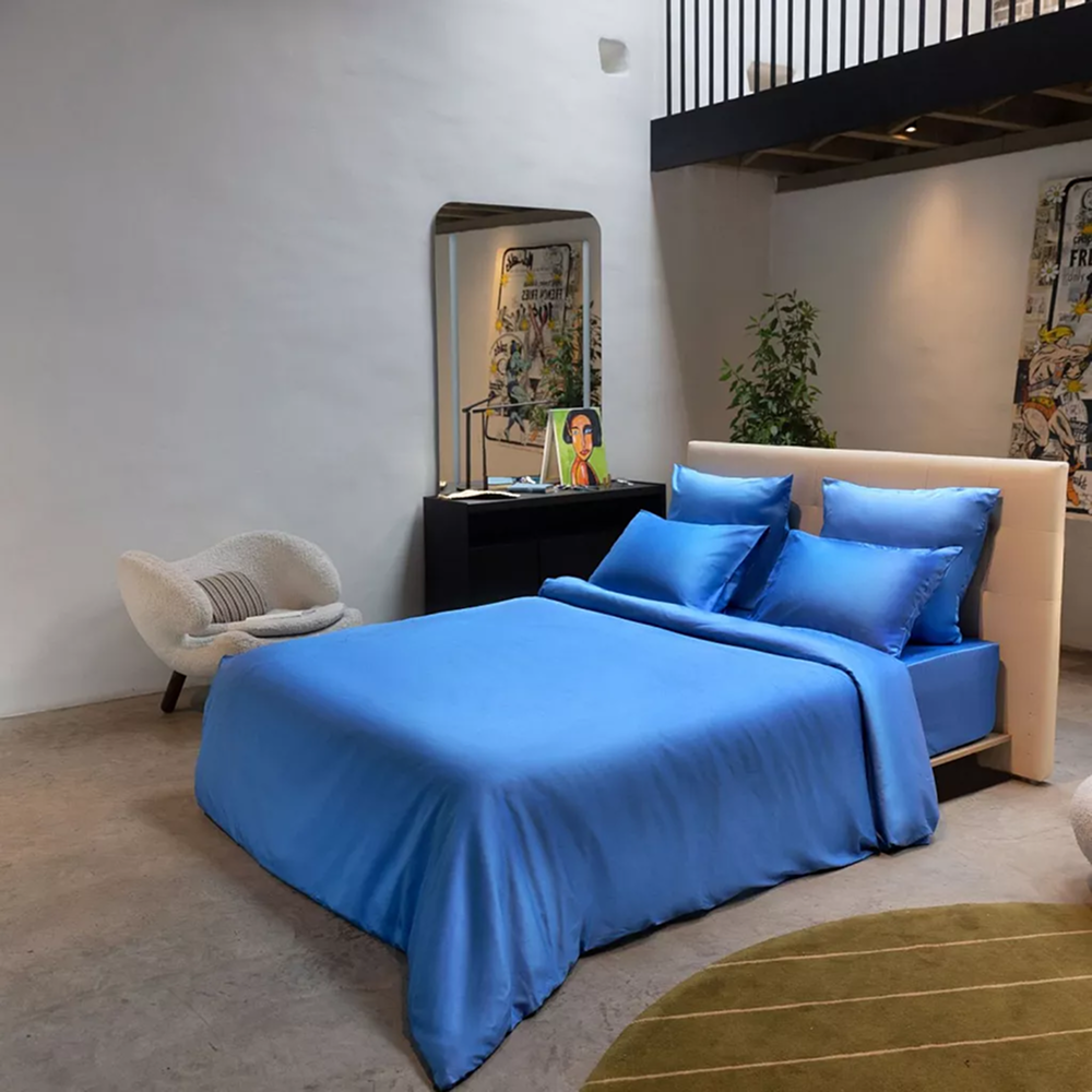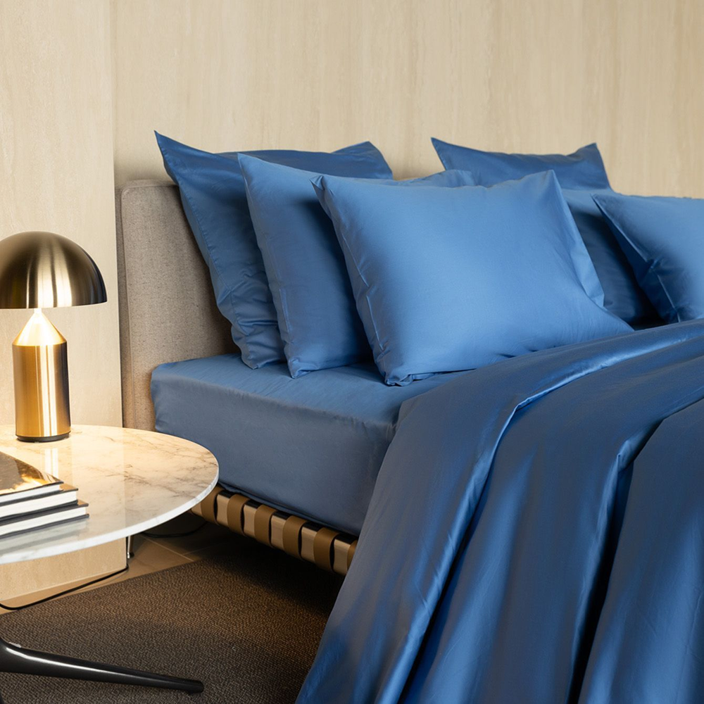 Пододеяльник в васильково-синем Mollen — это текстиль для тех, кто ценит комфорт сна, аккуратный внешний вид кровати и качественные материалы на каждый день. Изделие выполнено из 100% хлопка мако-сатина с сатиновым плетением, благодаря чему ткань отличается гладкостью, мягкостью и приятными тактильными ощущениями.
