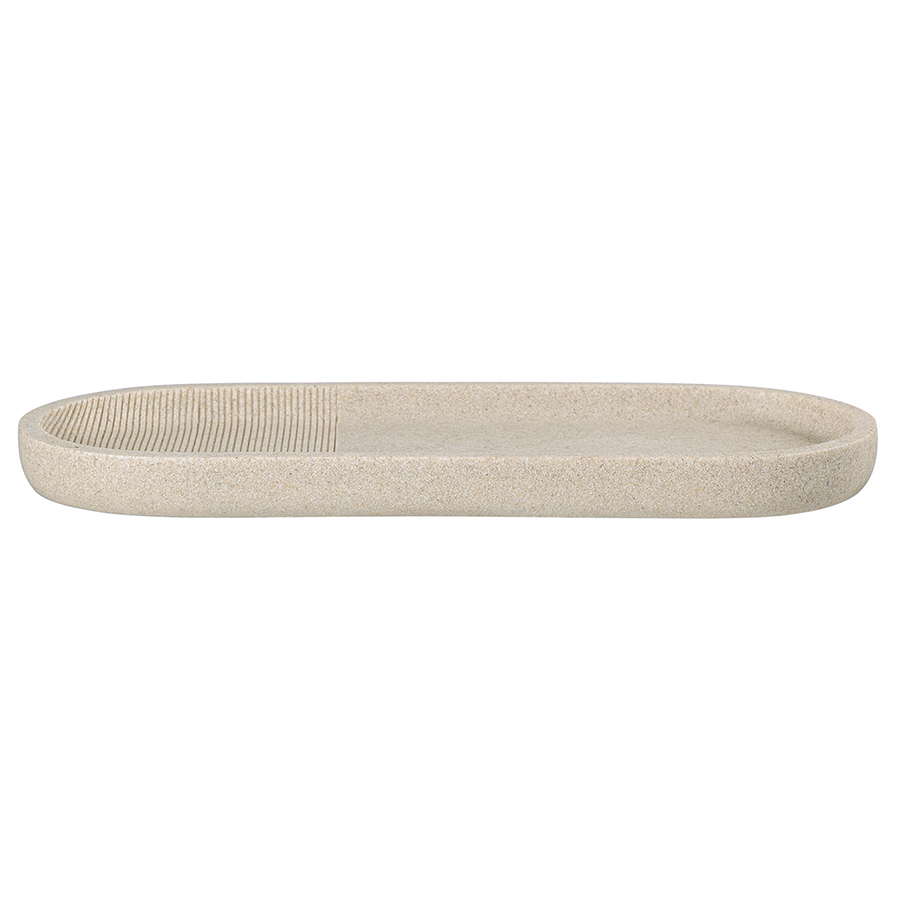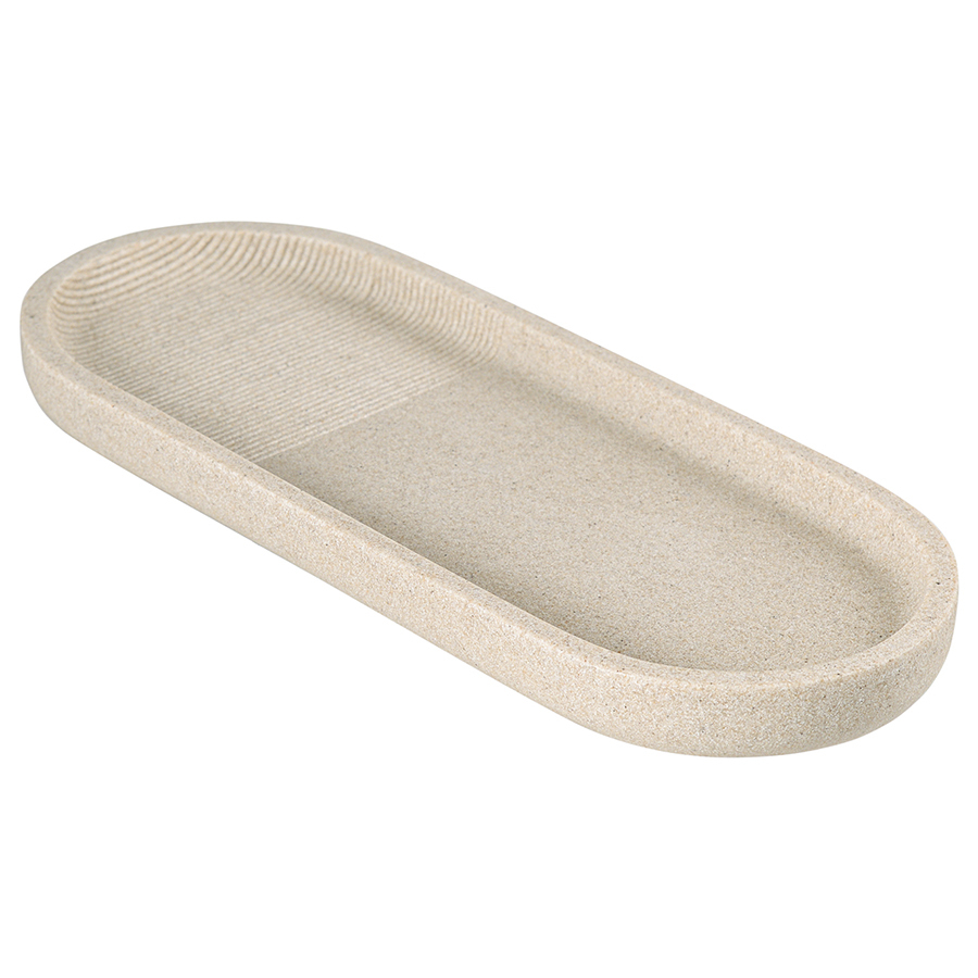 Подставка для ванных принадлежностей Loup выполнена из полирезина, стилизованного под натуральный камень бежевого оттенка. Материал легко моется, отличается устойчивостью к влаге, ударам и царапинам, что делает его идеальным выбором для ванной комнаты. На такой подставке можно удобно разместить диспенсер для мыла и стакан для зубных щеток, чтобы защитить используемую под них поверхность от капель воды и загрязнений.