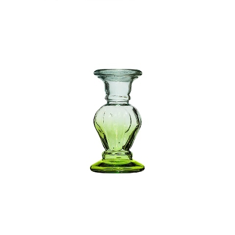 Красивый фигурный подсвечник на одну свечу. Выполнен из стекла зеленого цвета. Основание круглой формы. Высота 20 см.