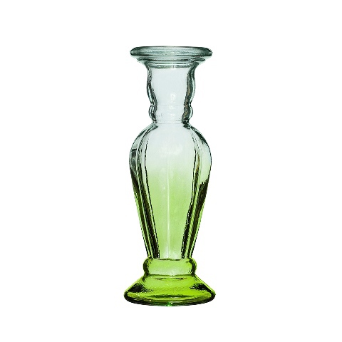 Красивый фигурный подсвечник на одну свечу. Выполнен из стекла зеленого цвета. Основание круглой формы. Высота 30 см.