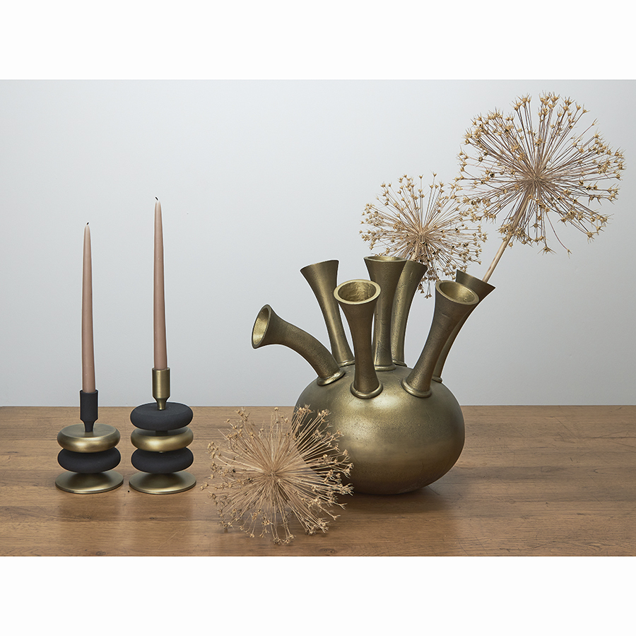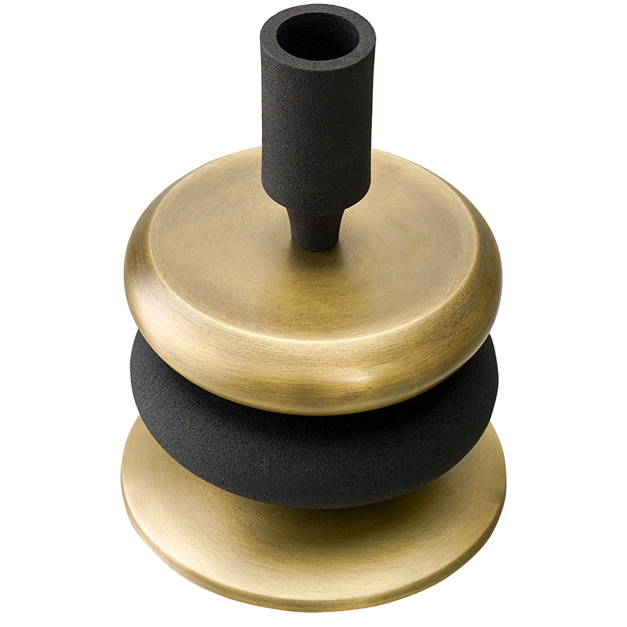 Подсвечник 17см Bergenson Bjorn Stone черный/античная латунь
