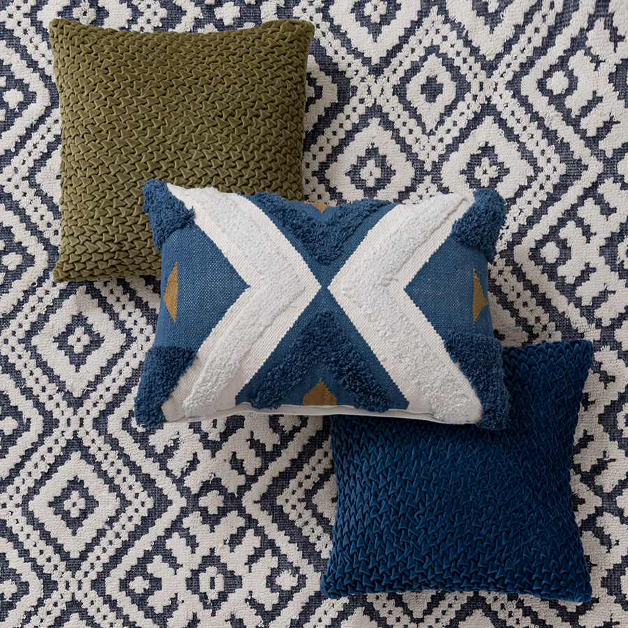 Декоративная подушка с объемным узором из коллекции Ethnic станет акцентом в любом современном интерьере. Броский объемный декор в контрастной сине-белой гамме добавит уюта в спальне или гостиной в стиле сканди, минимализм или фьюжн. Наполнитель – эластичный полиэстер, благодаря которому подушка быстро принимает форму и не деформируется после стирок. Чехол изготовлен из прочного, плотного 100%, хлопка, который не электризуется и не вызывает аллергию. Чехол на молнии легко снимается при необходимости.