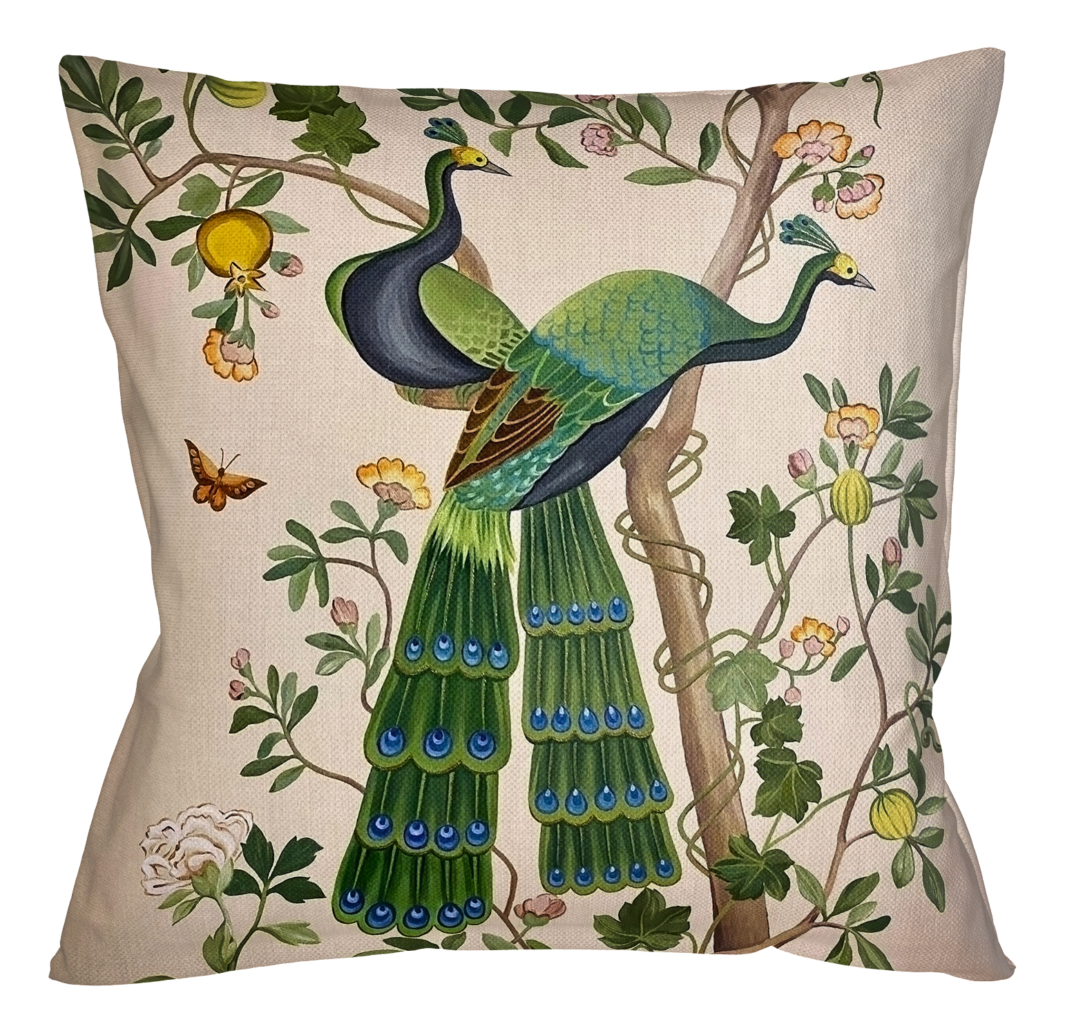 Главное преимущество в дизайне подушки Императорский павлин - пара пернатых, удивительной красоты. Впрочем, выбирать единственного и самого любимого совсем не обязательно: оба обладают уживчивым и покладистым характером с намеком на долгую и прекрасную интерьерную жизнь в вашем доме.
