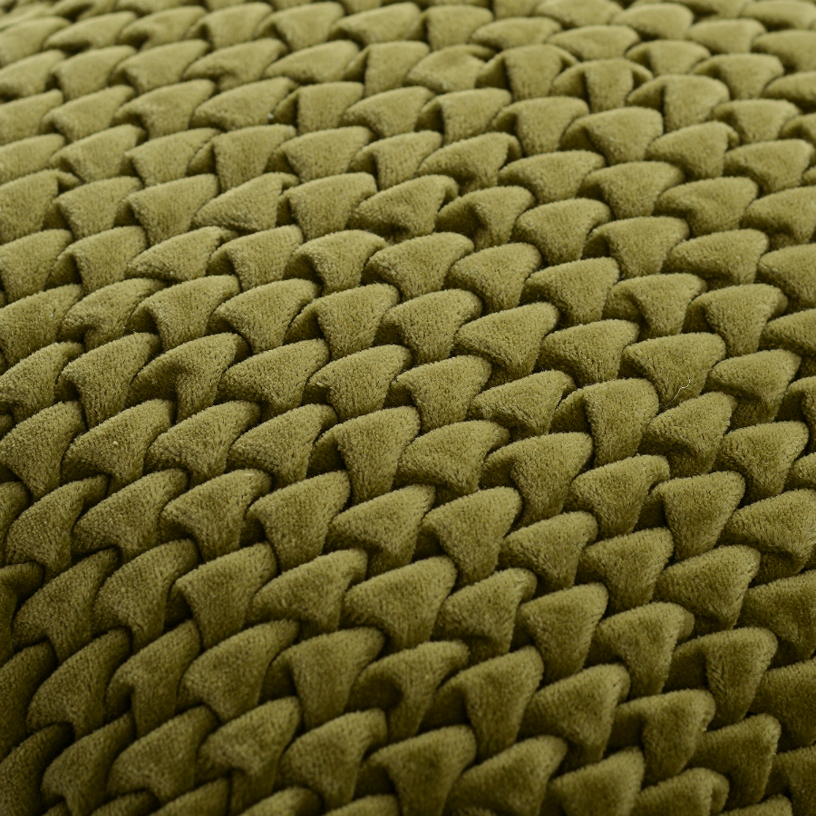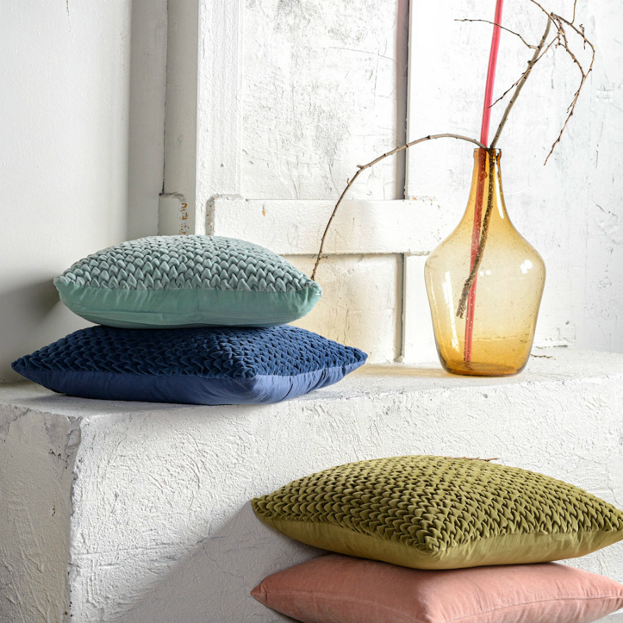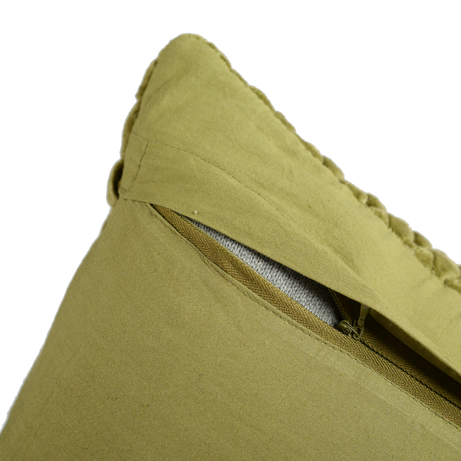Декоративная подушка с фактурным стеганым узором выполнена из прочного хлопкового бархата. Нежный, приятный на ощупь материал не электризуется, не вызывает аллергию, и за ним легко ухаживать. За счет плотного наполнителя изделие оливкового оттенка хорошо держит форму.