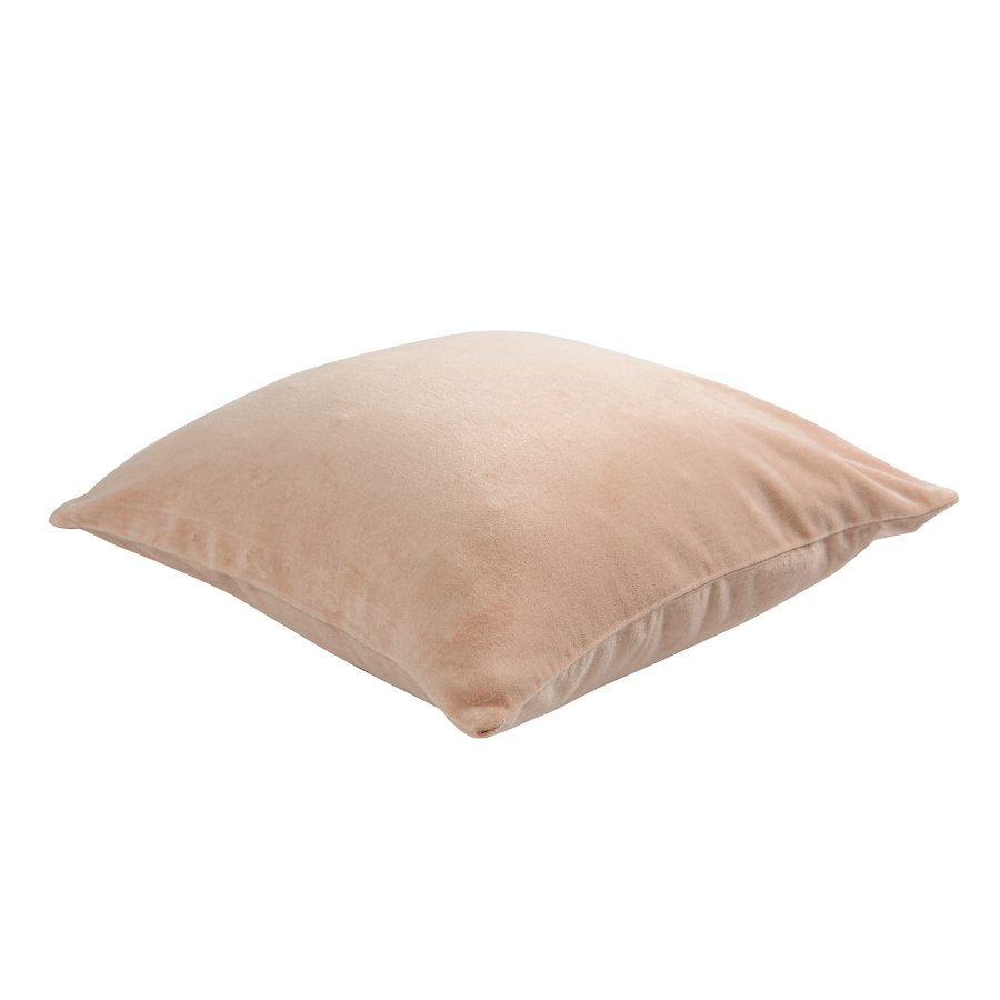 Декоративная подушка цвета пыльной розы выполнена из прочного хлопкового бархата. Нежный, приятный на ощупь материал не электризуется, не вызывает аллергию, и за ним легко ухаживать. За счет плотного наполнителя изделие хорошо держит форму.
