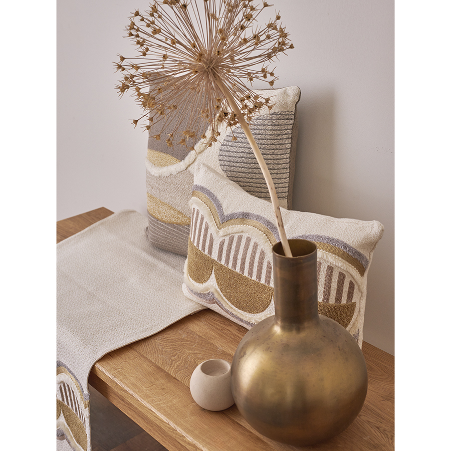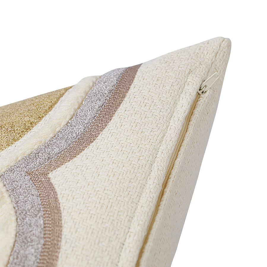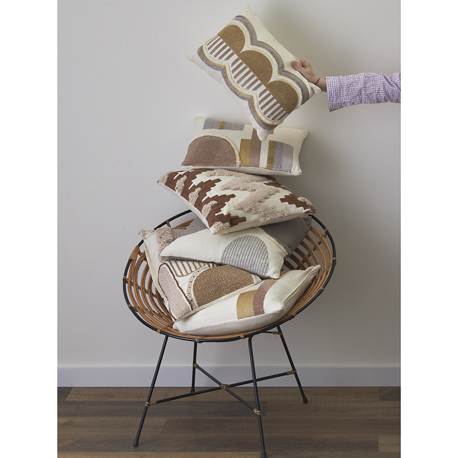 - Декоративный текстиль нейтрального бежевого цвета с геометрическим узором органично вписывается в различные интерьерные решения: сканди, эко, эклектика, фьюжн и другие.