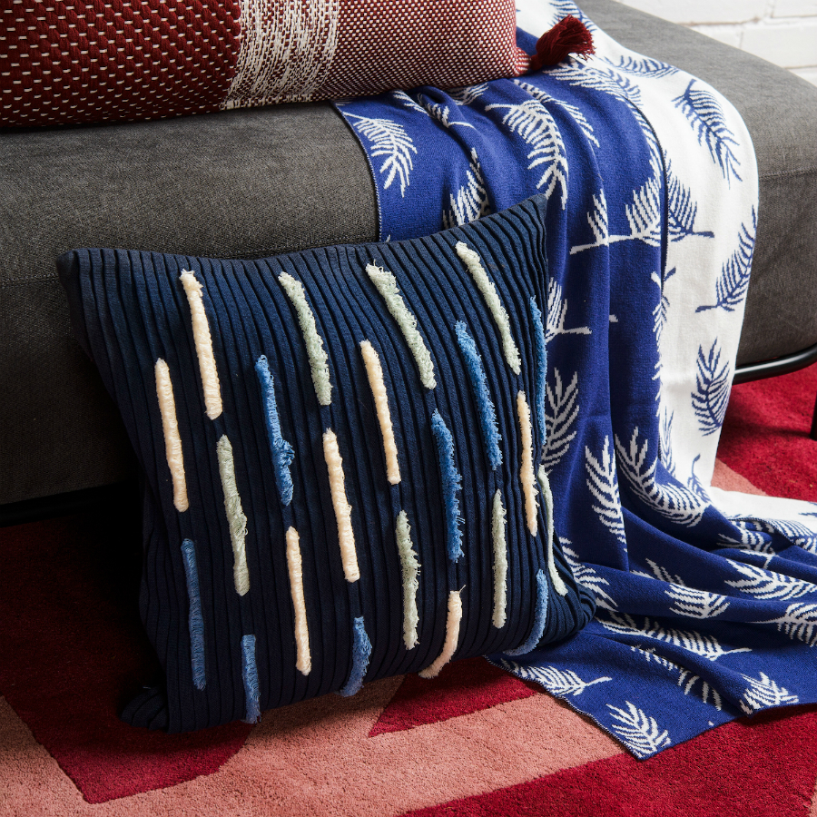 Декоративная подушка с эффектом плиссе выполнена из прочного хлопка, который не электризуется и не вызывает аллергию. Спереди – фактурный авторский орнамент, созданный из короткой бахромы. Мягкий плотный наполнитель рекомендуем стирать отдельно: для этого есть скрытая застежка на молнию на съемном чехле.