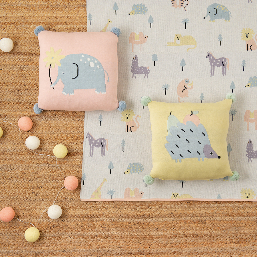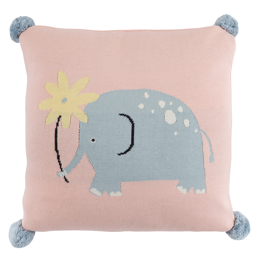 Подушка декоративная с помпонами 35х35 Tkano Tiny world Слоник Lou TK20-KIDS-CU0001