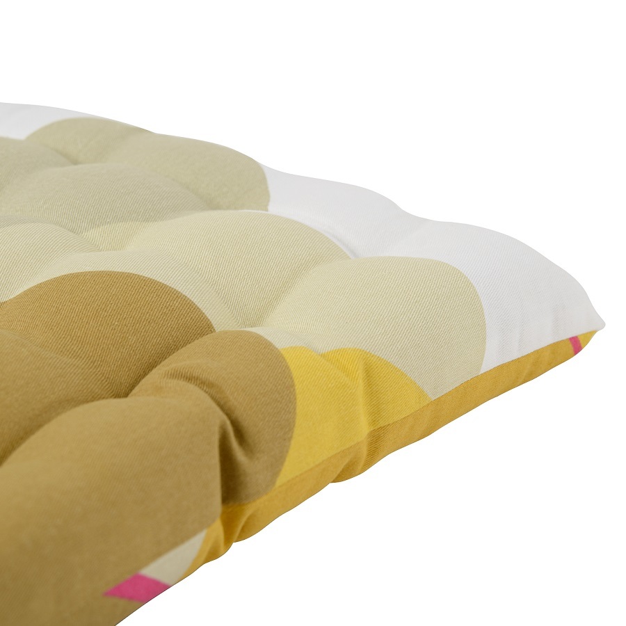 Изделие органично впишется в любой современный интерьер. Подушку можно использовать в качестве подкладки на деревянные или металлические стулья. Благодаря плотному наполнителю из полиэстера изделие не потеряет свою форму.