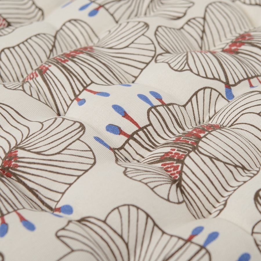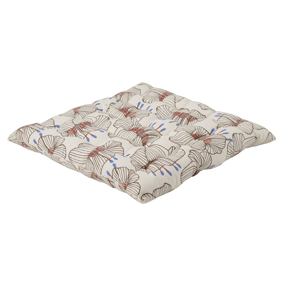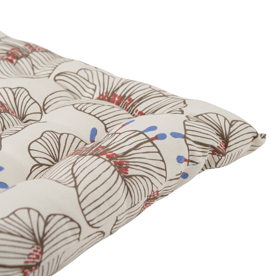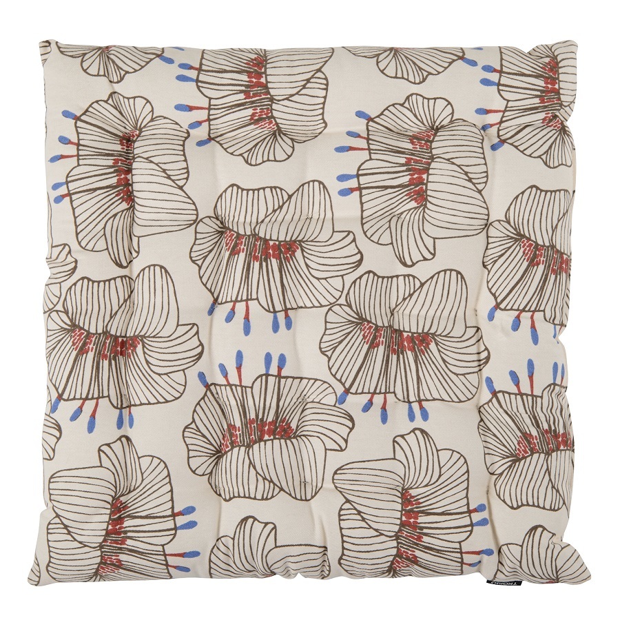 Подушка на стул из хлопка молочного цвета с принтом Цветы из коллекции Prairie – практичное и стильное украшение кухонной мебели. Дизайн изделия с крупными цветами станетярким акцентом и гармонично впишется всовременный интерьер. Подушку можно использовать в качестве подкладки на деревянные или металлические стулья. Благодаря плотному наполнителю из полиэстера изделие не потеряет свою форму.