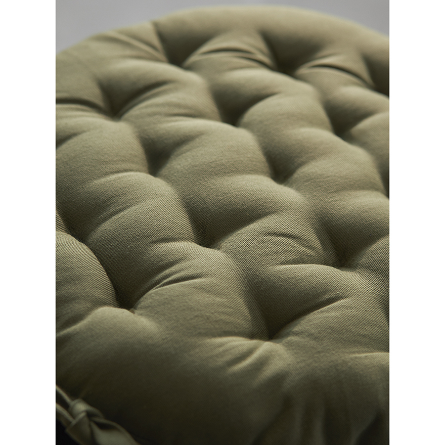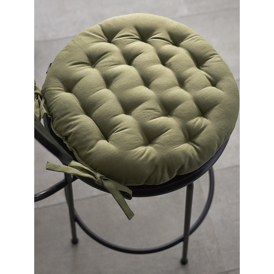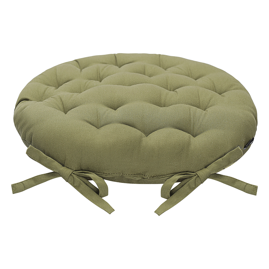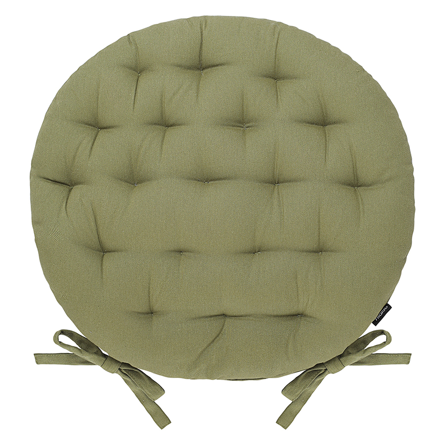 Подушка круглая оливкового цвета из коллекции Essential станет отличным дополнением к вашей кухонной мебели. Ее можно использовать в качестве мягкой накладки на деревянные или металлические стулья, чтобы сделать их жесткую поверхность более удобной для сидения. Подушка легко фиксируется на ножках мебели с помощью специальных завязок. Однотонное изделие в лаконичном дизайне органично вписывается в любой современный интерьер. Чехол подушки изготовлен из экологичного и долговечного 100% хлопка. В качестве наполнителя используется плотный полиэстер, который позволяет изделию сохранять первоначальную форму на протяжении всего срока службы.