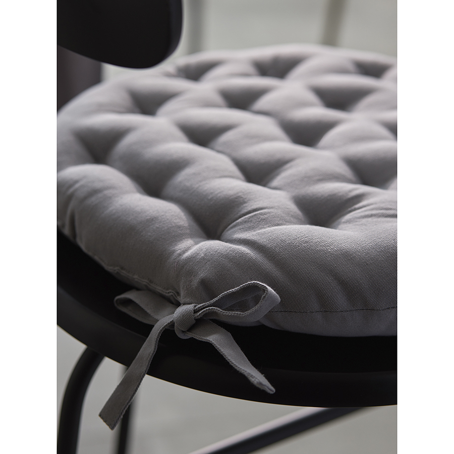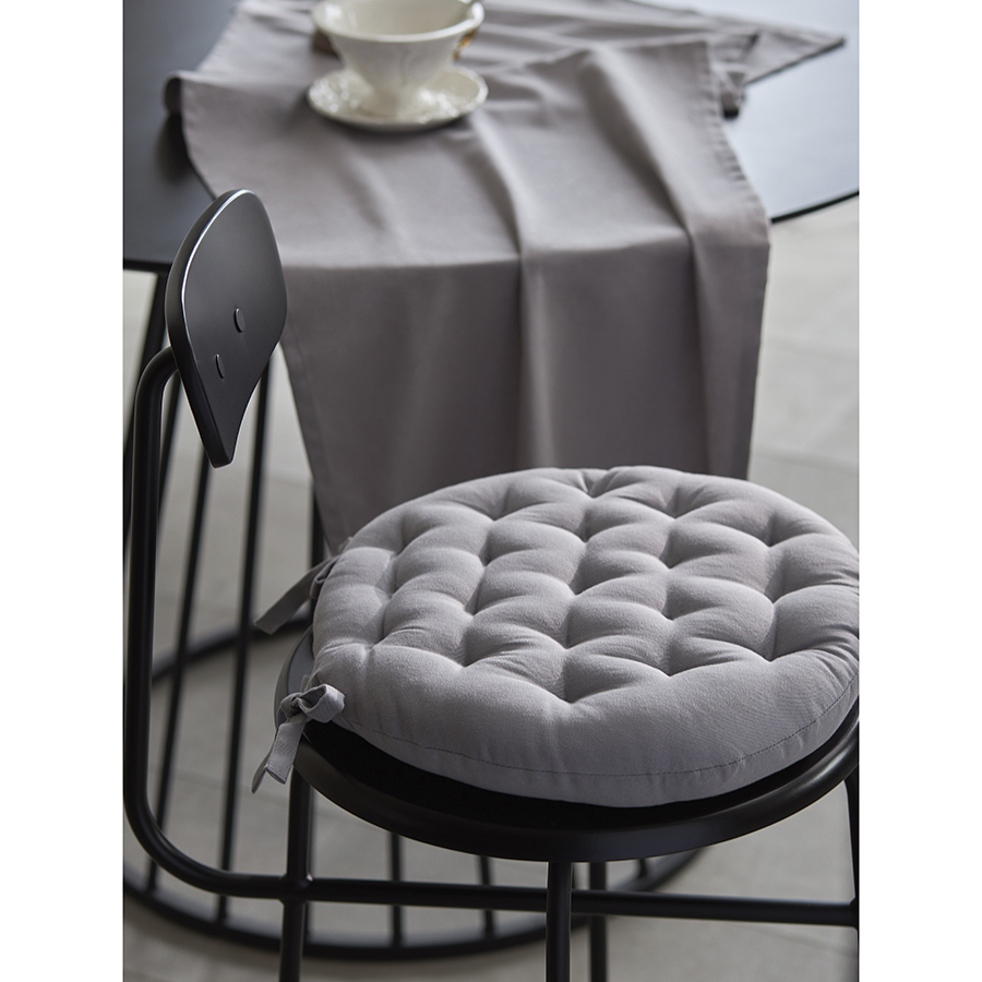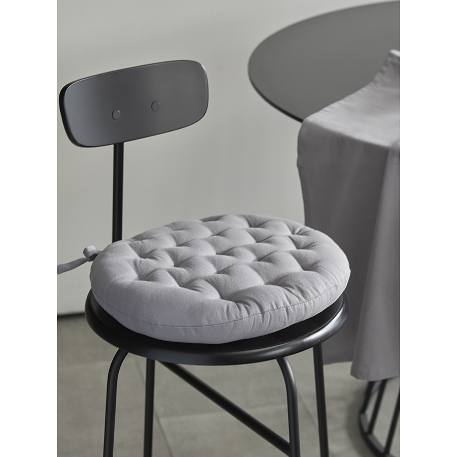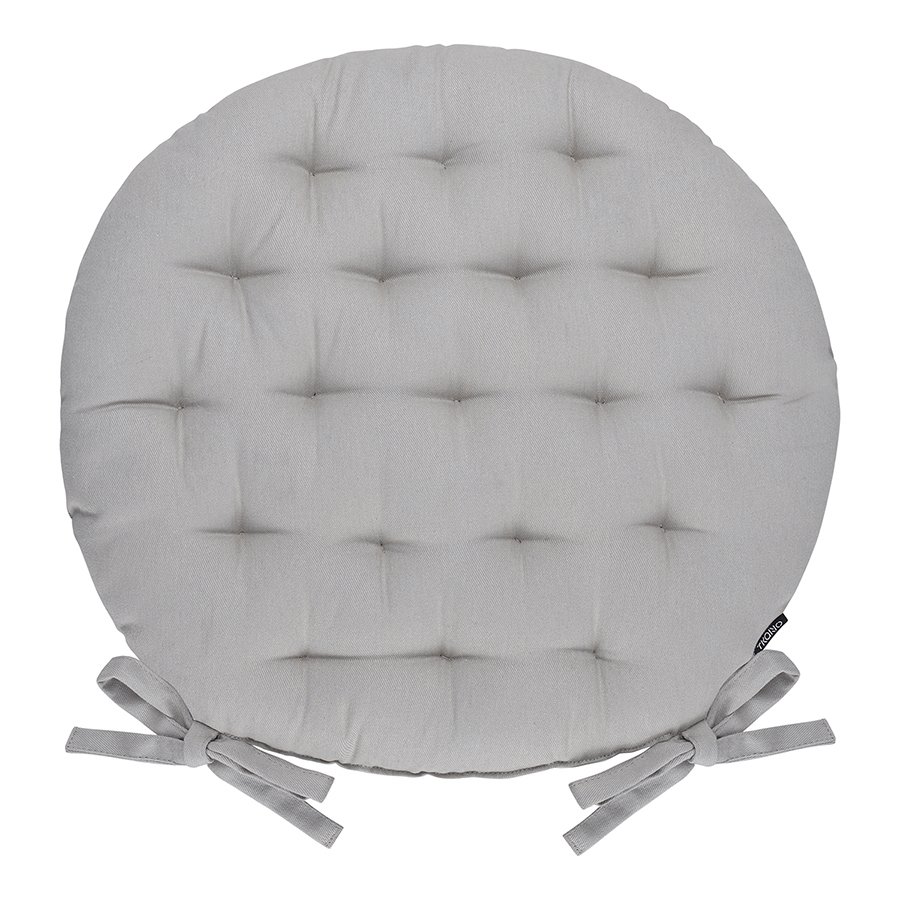 Подушка круглая серого цвета из коллекции Essential станет отличным дополнением к вашей кухонной мебели. Ее можно использовать в качестве мягкой накладки на деревянные или металлические стулья, чтобы сделать их жесткую поверхность более удобной для сидения. Подушка легко фиксируется на ножках мебели с помощью специальных завязок. Однотонное изделие в лаконичном дизайне органично вписывается в любой современный интерьер. Чехол подушки изготовлен из экологичного и долговечного 100% хлопка. В качестве наполнителя используется плотный полиэстер, который позволяет изделию сохранять первоначальную форму на протяжении всего срока службы.