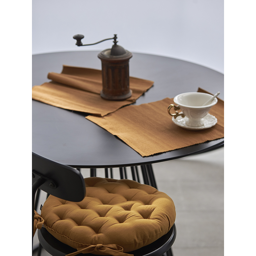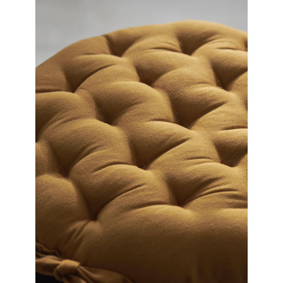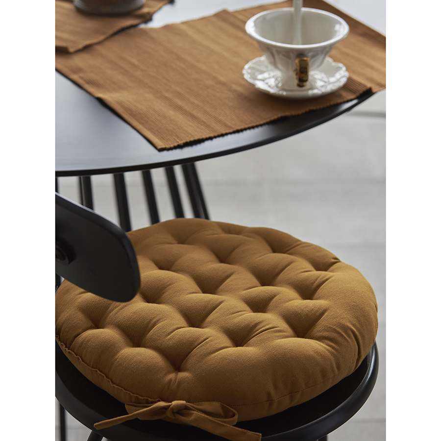 Подушка круглая цвета карри из коллекции Essential станет отличным дополнением к вашей кухонной мебели. Ее можно использовать в качестве мягкой накладки на деревянные или металлические стулья, чтобы сделать их жесткую поверхность более удобной для сидения. Подушка легко фиксируется на ножках мебели с помощью специальных завязок. Однотонное изделие в лаконичном дизайне органично вписывается в любой современный интерьер. Чехол подушки изготовлен из экологичного и долговечного 100% хлопка. В качестве наполнителя используется плотный полиэстер, который позволяет изделию сохранять первоначальную форму на протяжении всего срока службы.