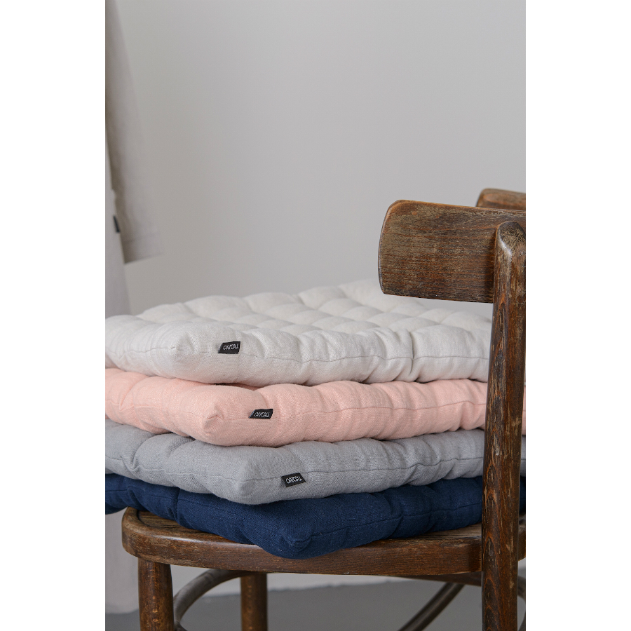 Стеганая подушка на стул из умягченного льна – практичное и стильное украшение кухонной мебели. За счет элегантного дизайна изделие органично впишется в любой современный интерьер. Подушку можно использовать в качестве покрытия на деревянные или металлические стулья. Материал хорошо пропускает воздух и впитывает влагу, а также обладает гипоаллергенными и бактерицидными свойствами. Легкая в уходе модель с мягким наполнителем хорошо держит форму, поэтому подушка прослужит долго.