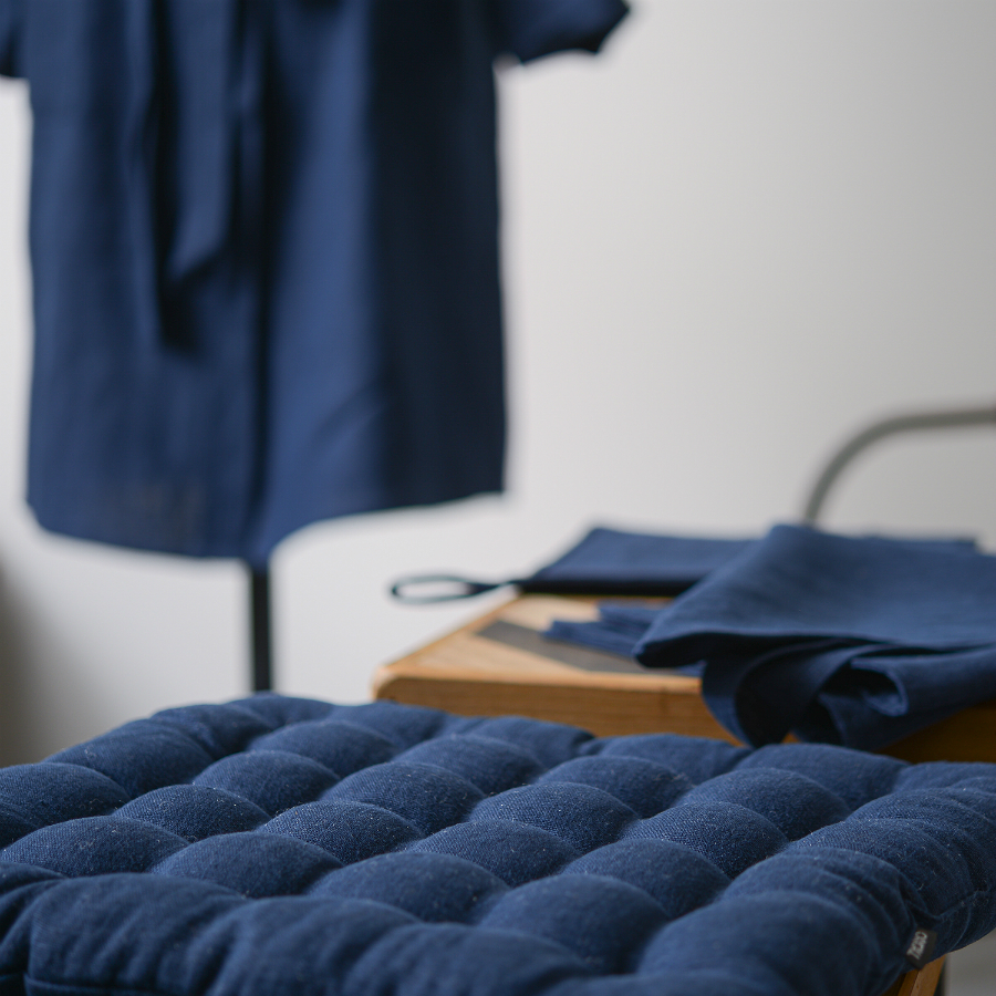 Подушка на стул стеганая 40х40 Tkano Essential темно-синяя