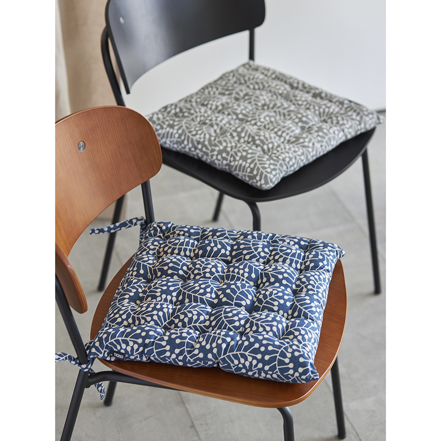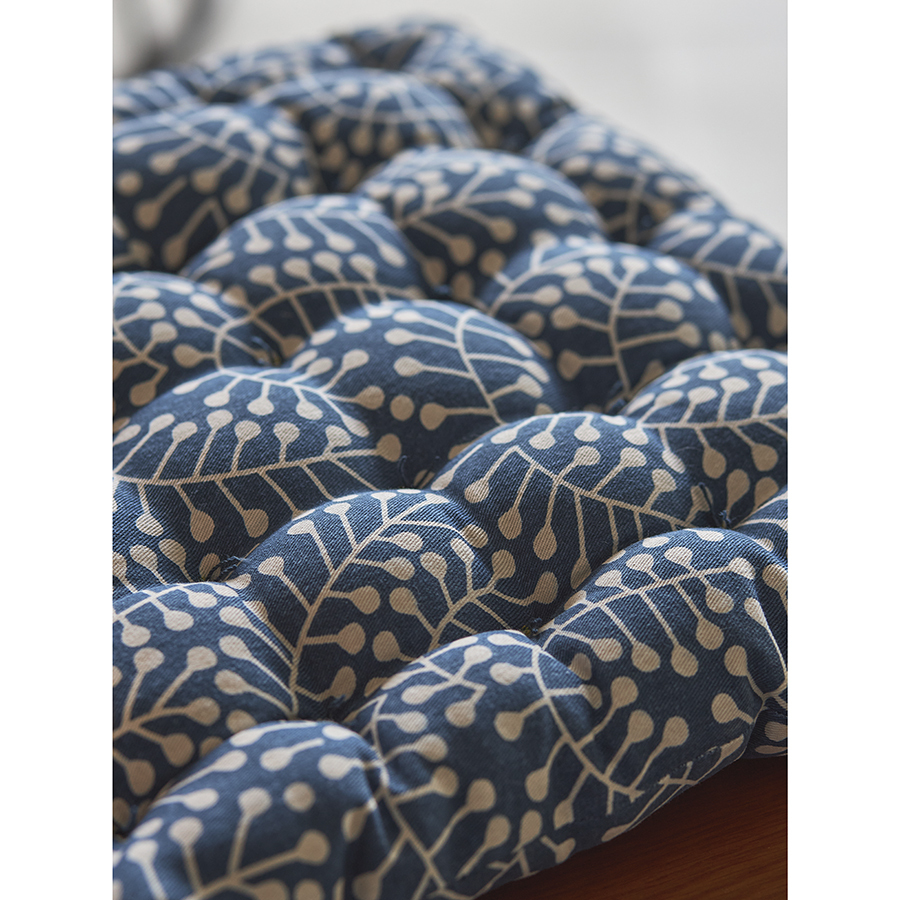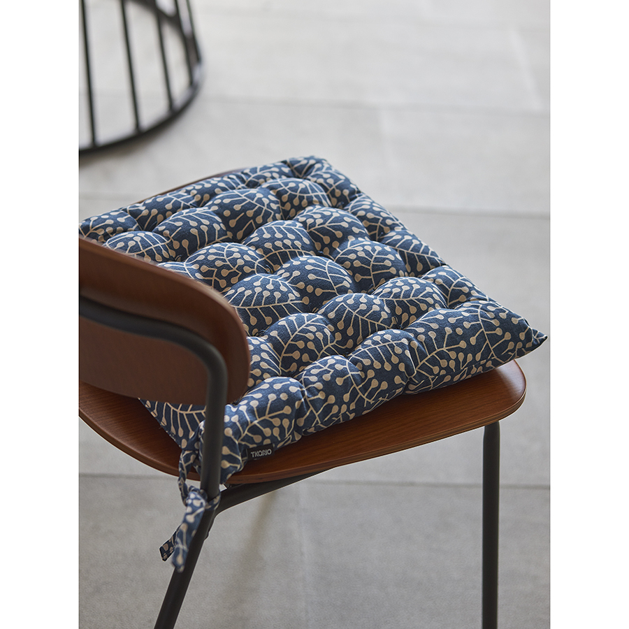 Подушка на стул темно-синего цвета с принтом Спелая Смородина из коллекции Scandinavian touch сделает жесткую поверхность домашней или уличной мебели более комфортной для сидения. Изделие с авторским принтом, разработанным одним из ведущих финских дизайнерских агентств, органично впишется в любой современный интерьер. Чехол подушки выполнен из прочного хлопка, который долго сохраняет привлекательный вид и не деформируется после множества стирок. Благодаря плотному наполнителю из полиэстера изделие сохраняет свою первоначальную форму на протяжении всего срока службы. Подушка легко фиксируется на ножках мебели с помощью специальных завязок.