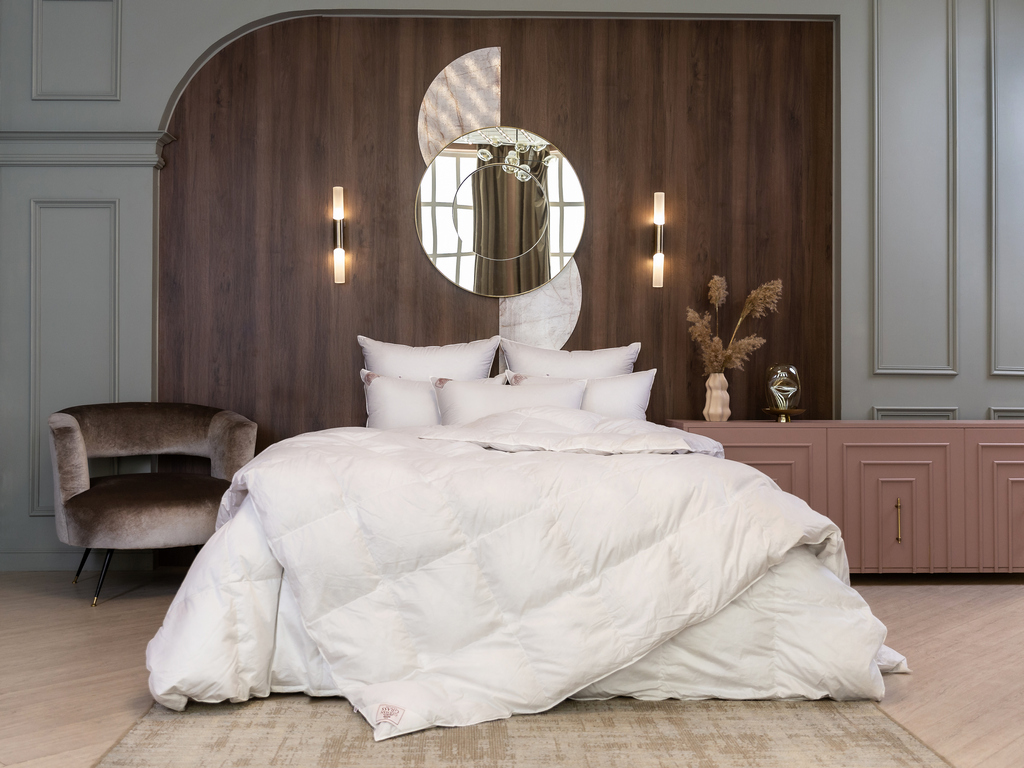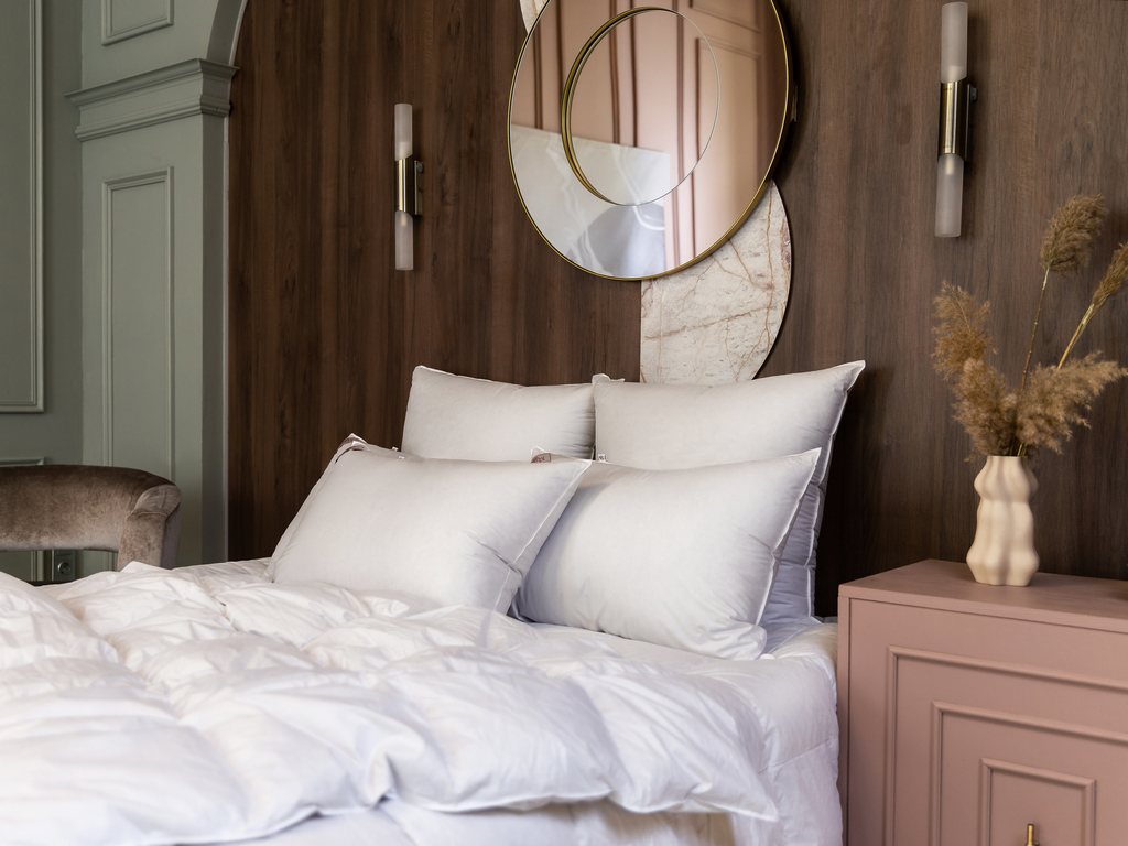Подушки коллекции GRASS SILVER DOWN LINE наполнены пуховым наполнителем первой категории: серым пухом гусей Тулузской породы с добавлением мелкого перышка, что позволяет получить объём и упругость