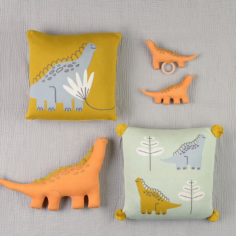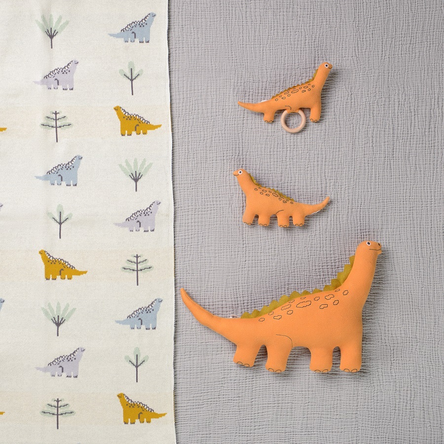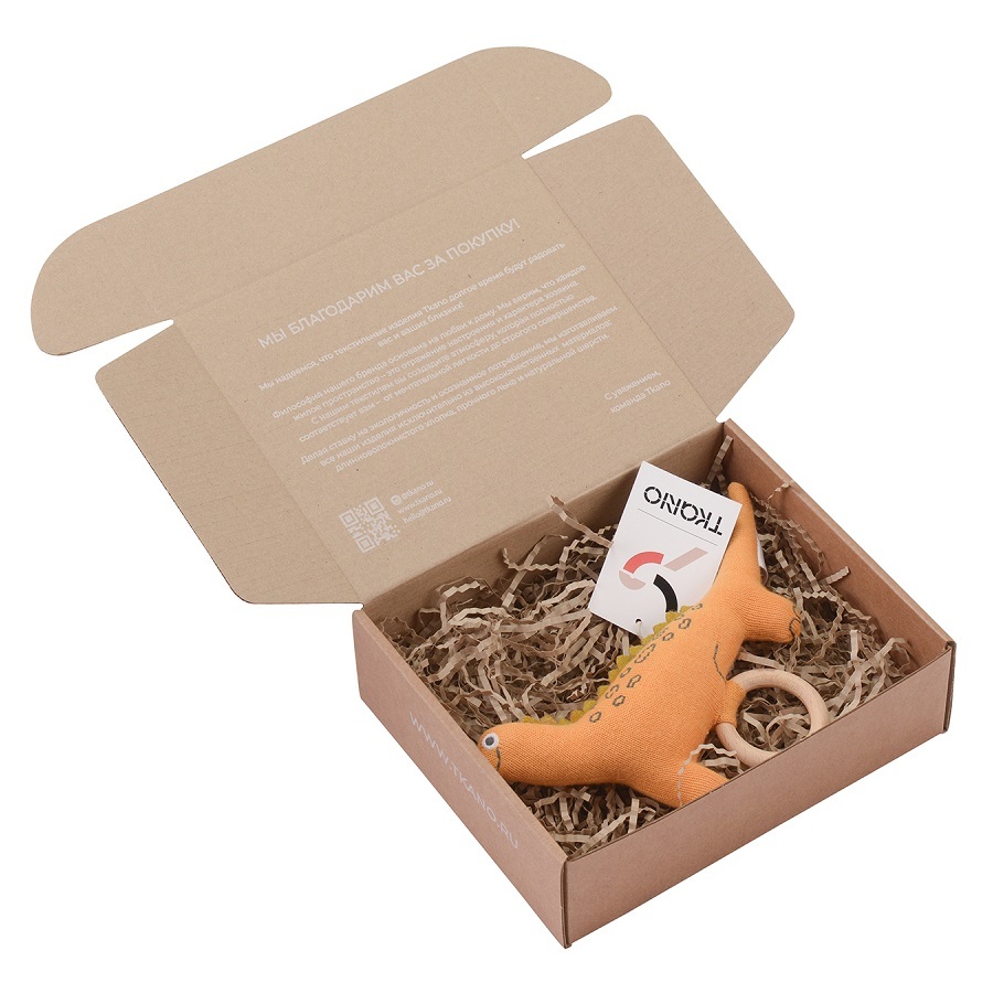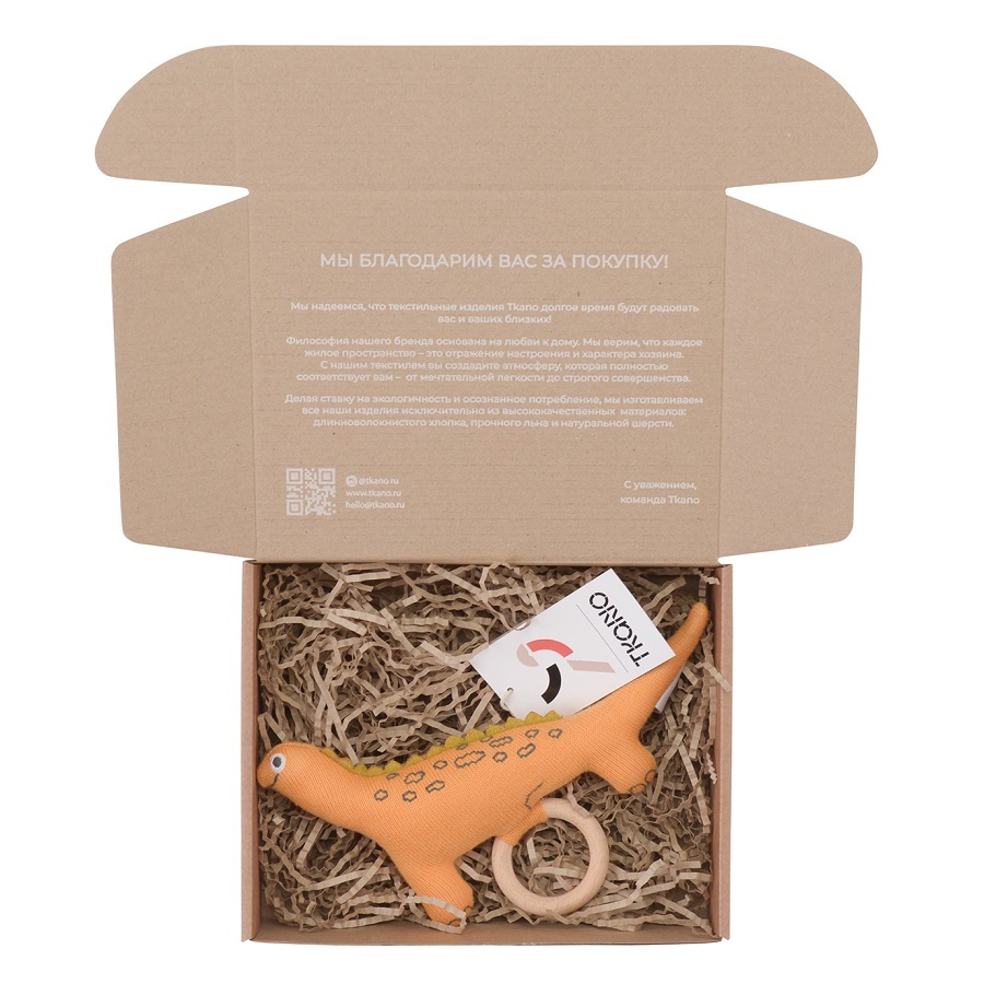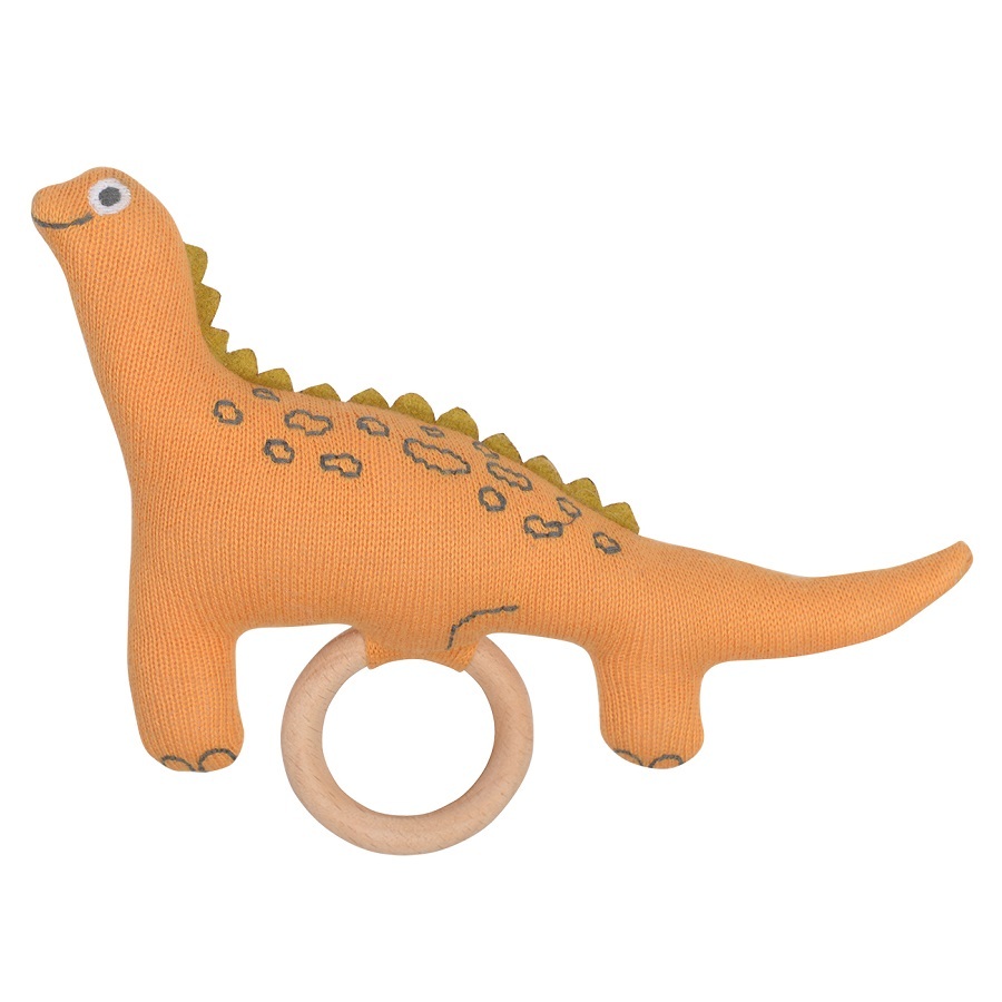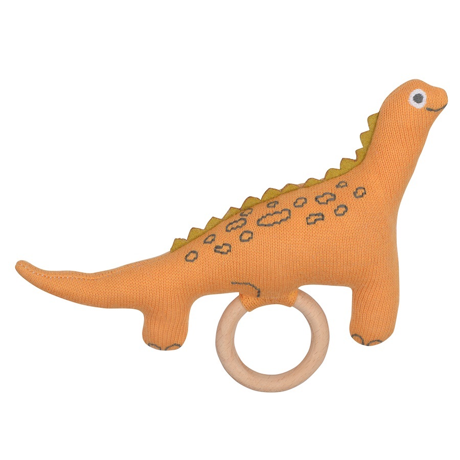 Погремушка из хлопка с деревянным держателем Динозавр Toto из коллекции Tiny world приятна на ощупь и безопасна. Игрушка выполнена в сдержанных цветах, фигурка динозавра стилизована, но узнаваема. Благодаря деревянному кольцу и множеству мелких выступающих деталей, ребенку удобно захватывать и удерживать погремушку, а также безопасно играть с ней. Игрушка поставляется в подарочной упаковке.