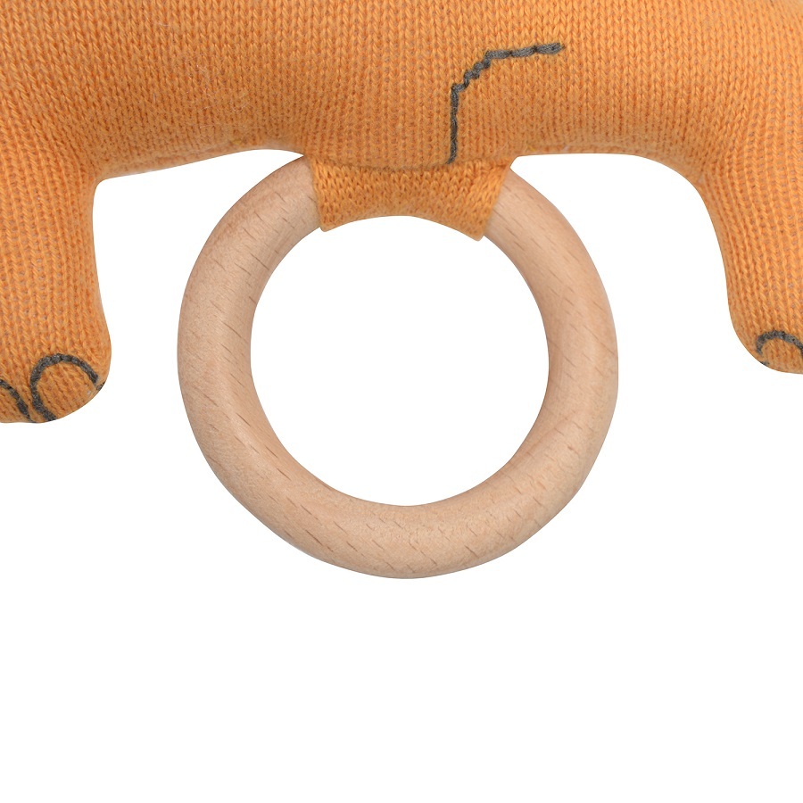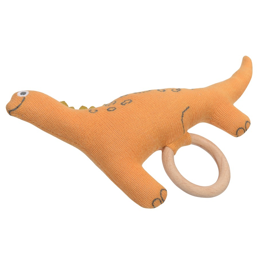Погремушка хлопковая с деревянным держателем 14х11см Tkano Tiny world Динозавр Toto