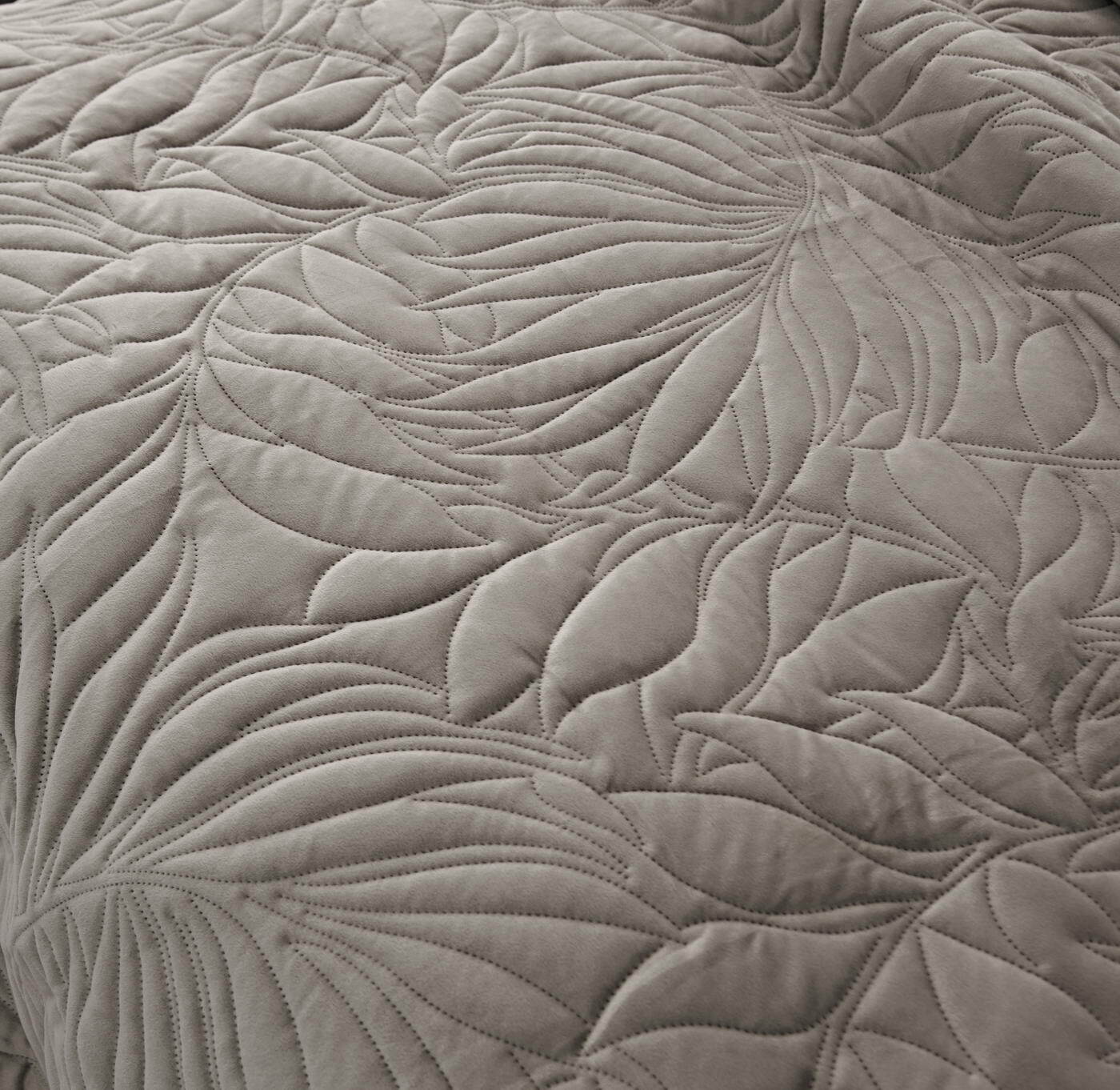 Стёганое покрывало Глория изготовлено из 100% вискозы, что делает его невероятно мягким и комфортным. Рисунок напоминает листья лавра. Такой орнамент подойдет большинству современных интерьеров.